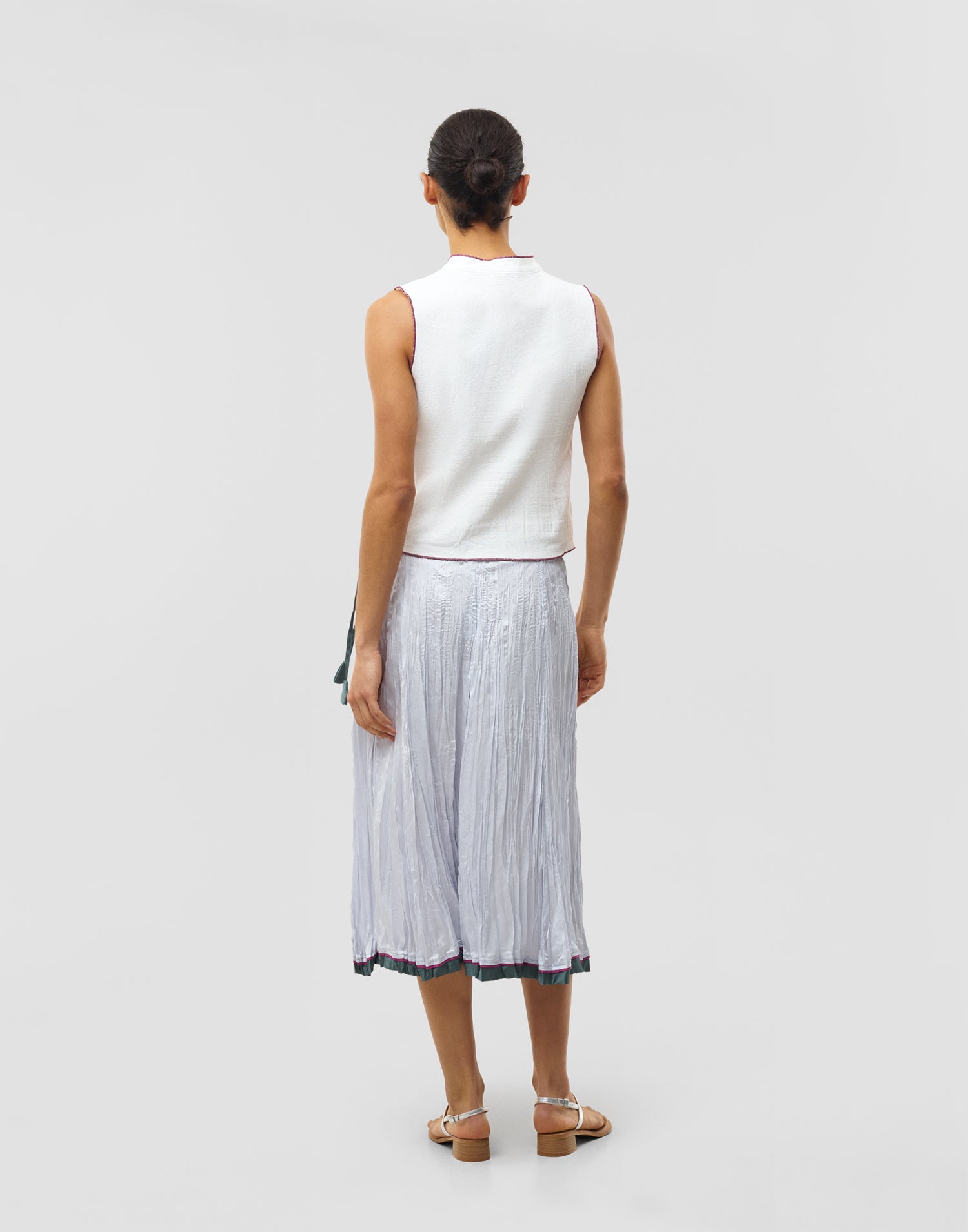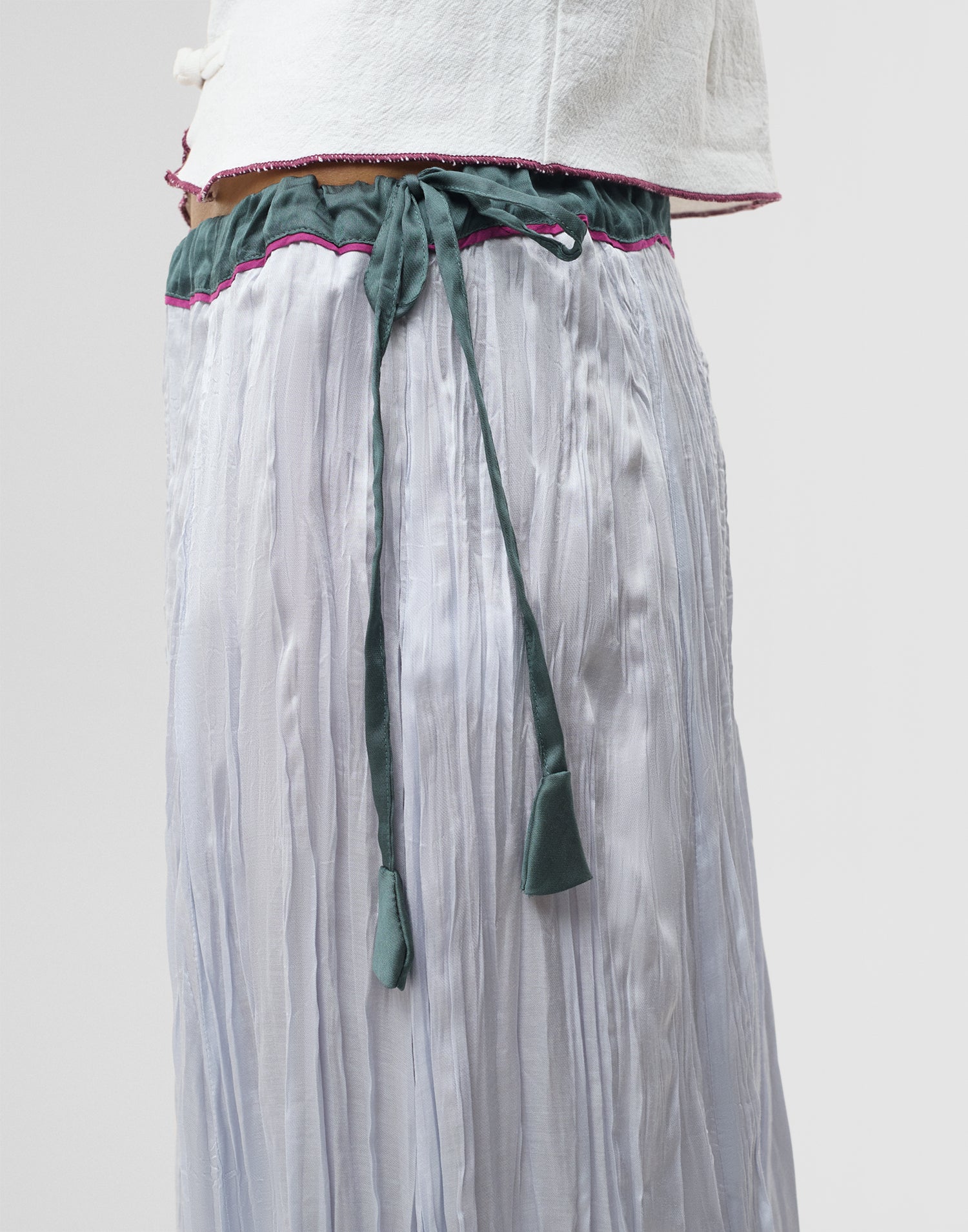 Falda midi en hilatura de viscosa, con cierre lateral de lazada y acabado efecto arrugado.