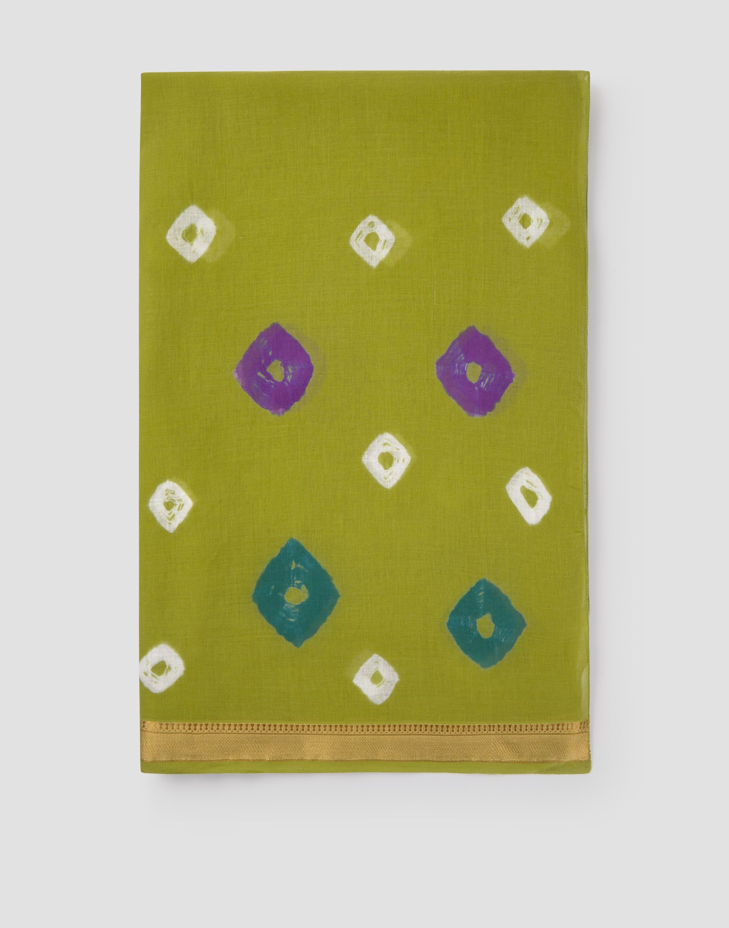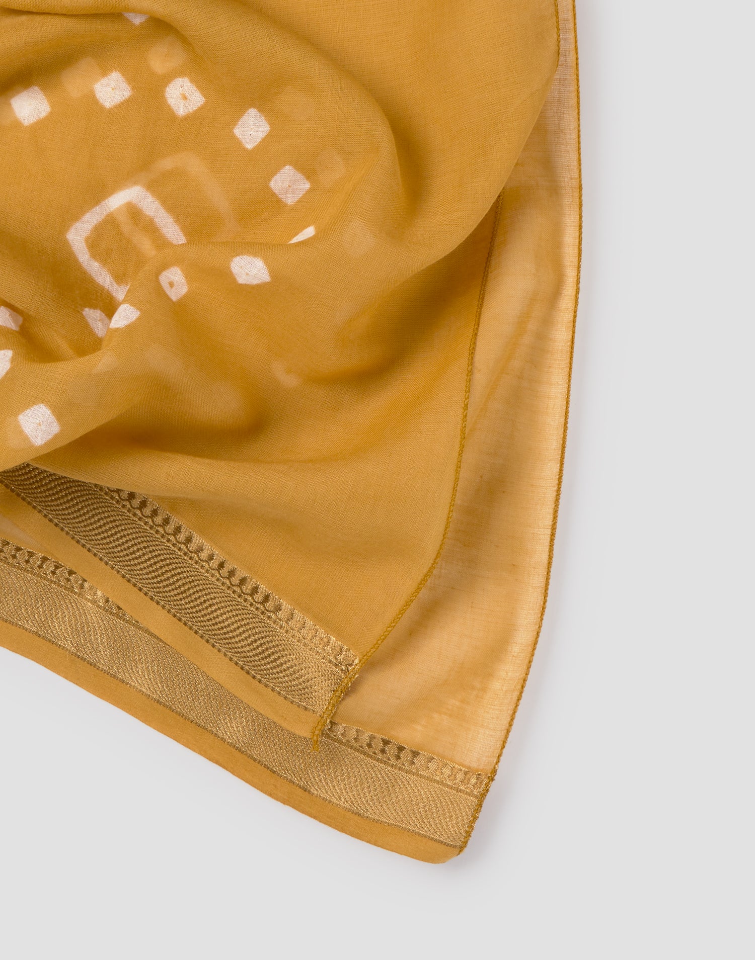 Pañuelo estampado con efecto tie dye confeccionado en algodón y detalle de tejido tipo sari indio.