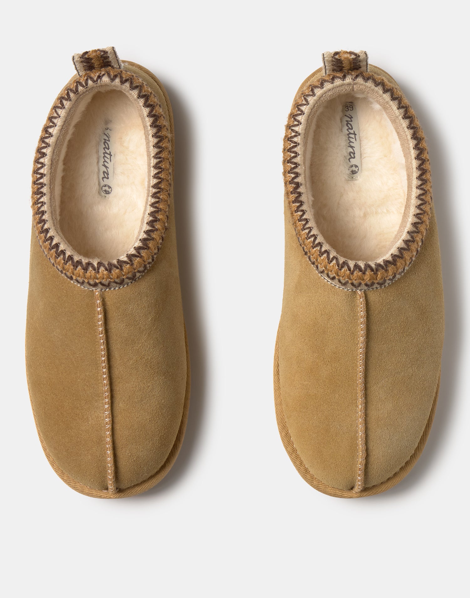 Bottine à profil bas avec empeigne en daim et détail tressé au niveau du col. Semelle en caoutchouc antidérapante et doublure intérieure effet fourrure. Convient pour l’intérieur et l’extérieur.