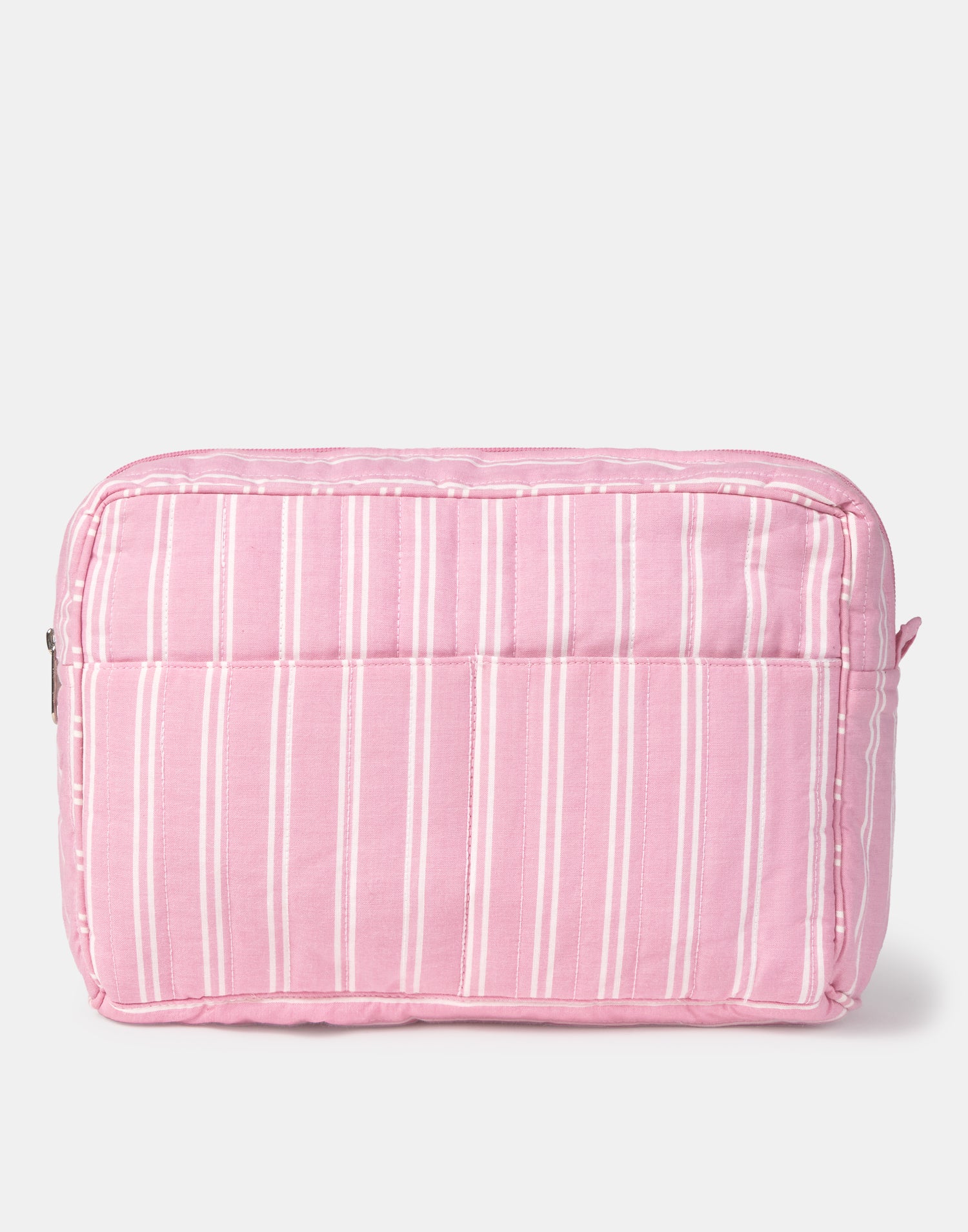 Trousse imprimée avec fermeture zippée et doublure intérieure plastifiée.