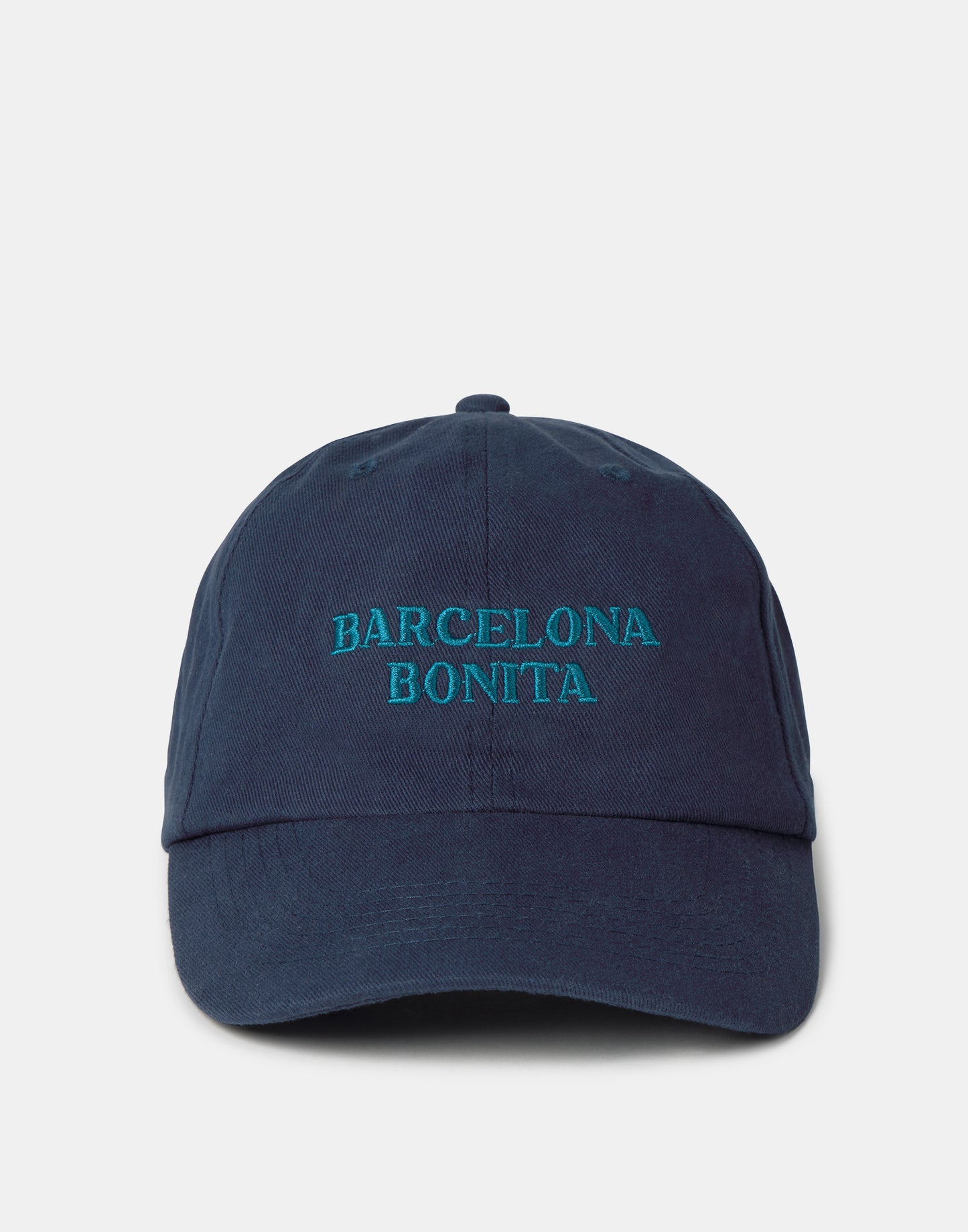 Casquette en coton avec message brodé sur le devant et fermeture réglable.