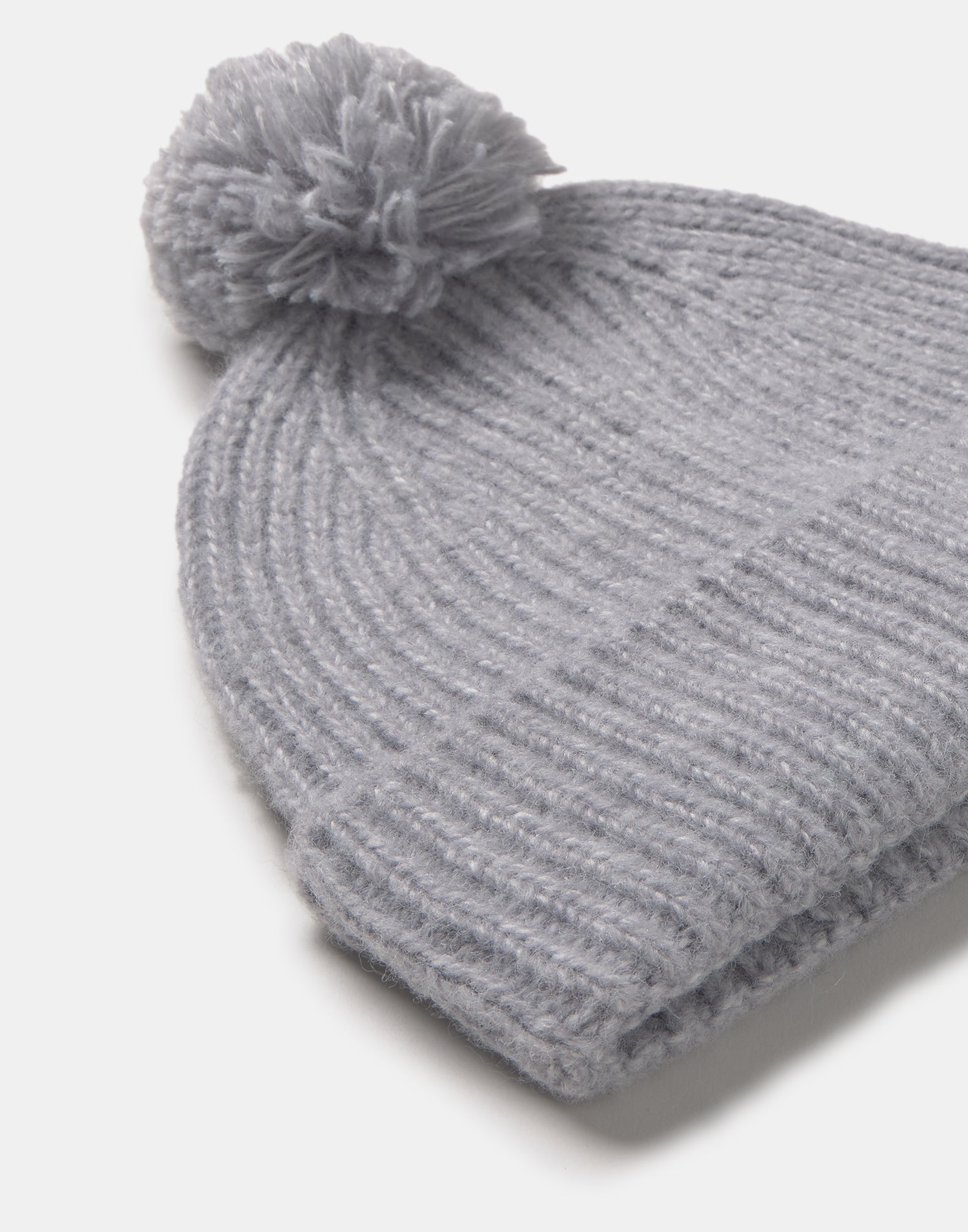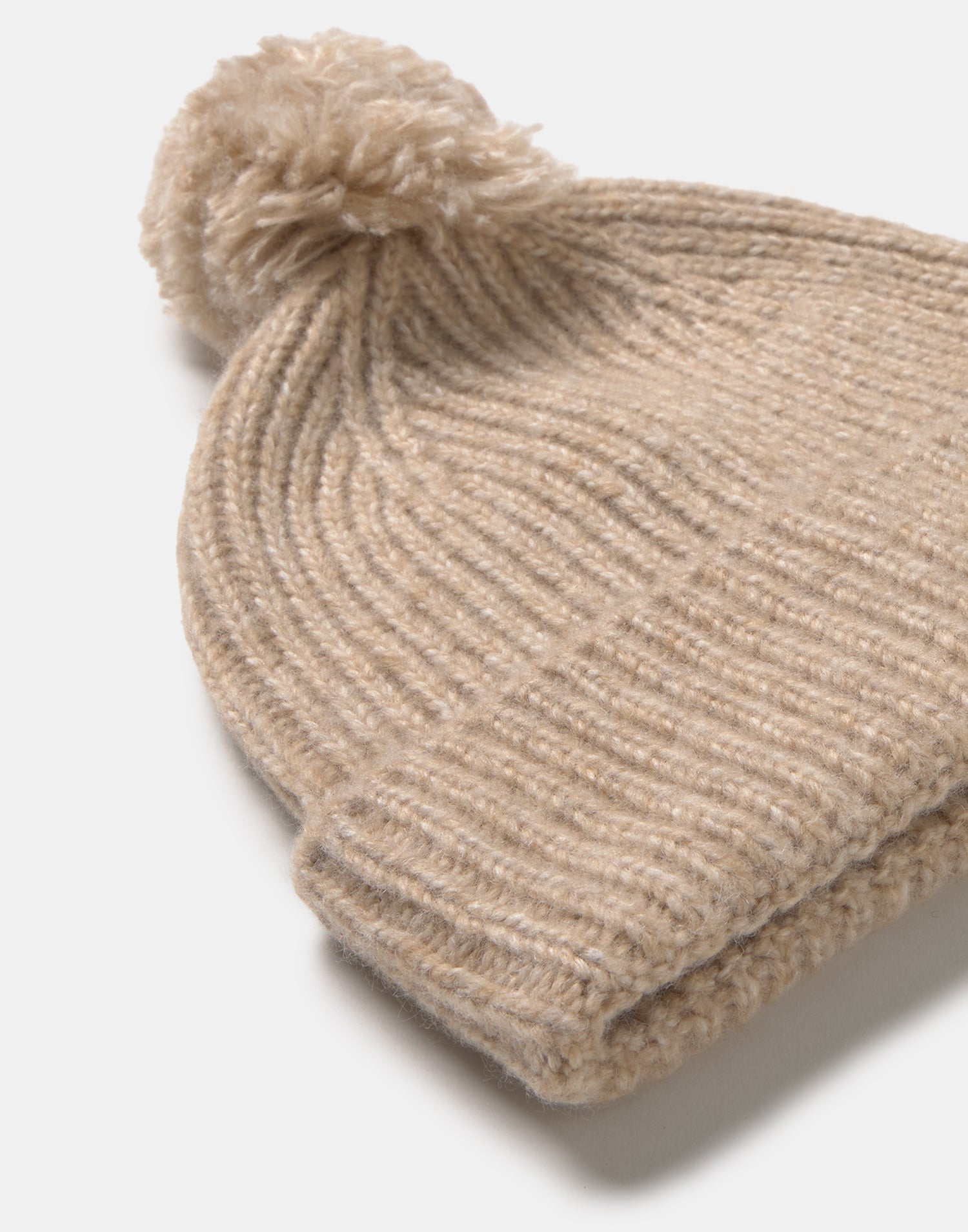 Bonnet en maille, finition revers et détail pompon.