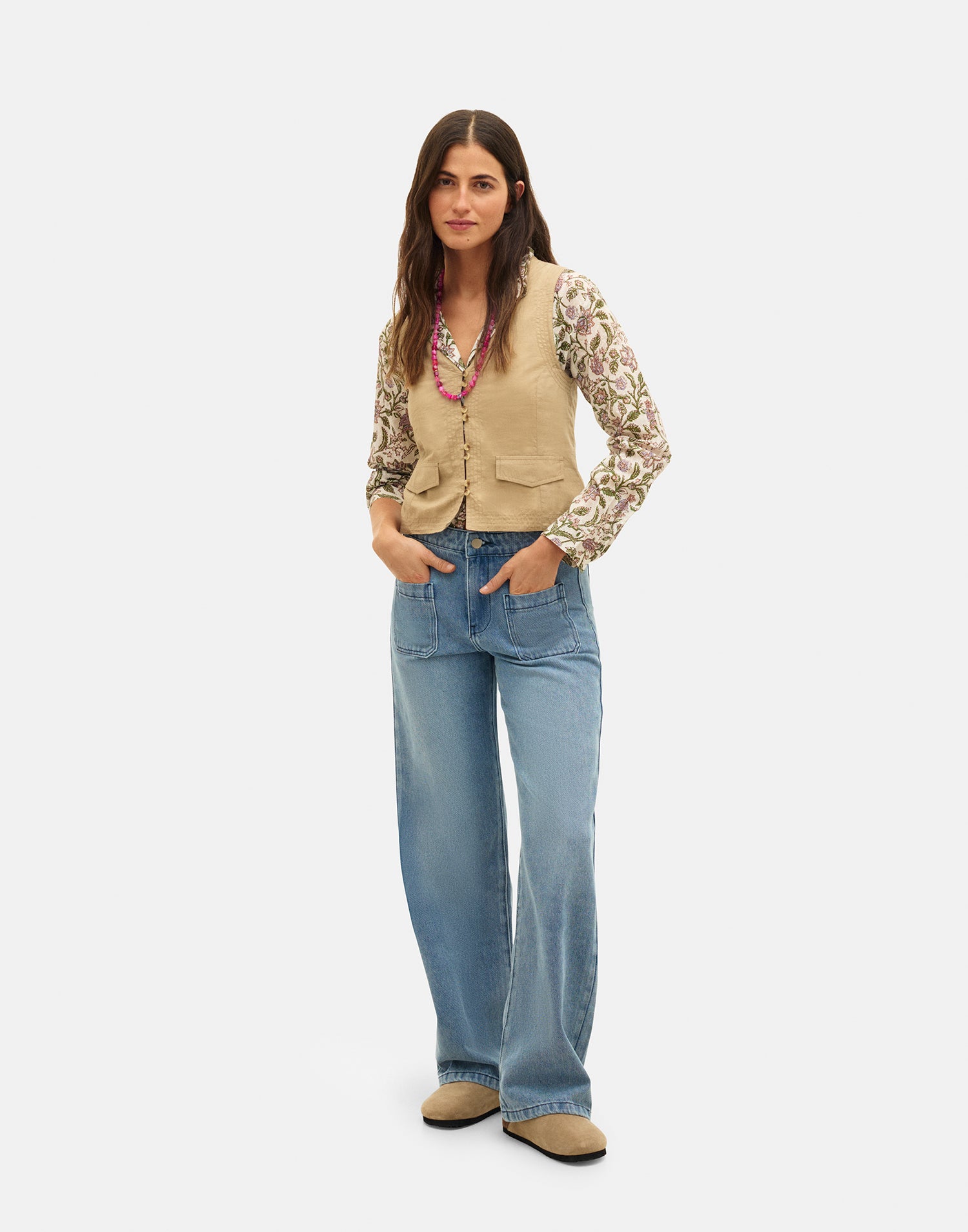 Chemise imprimée à manches longues avec poignets boutonnés, fermeture boutonnée sur le devant et col à revers. Poches plaquées sur le devant et détails en dentelle ton sur ton.