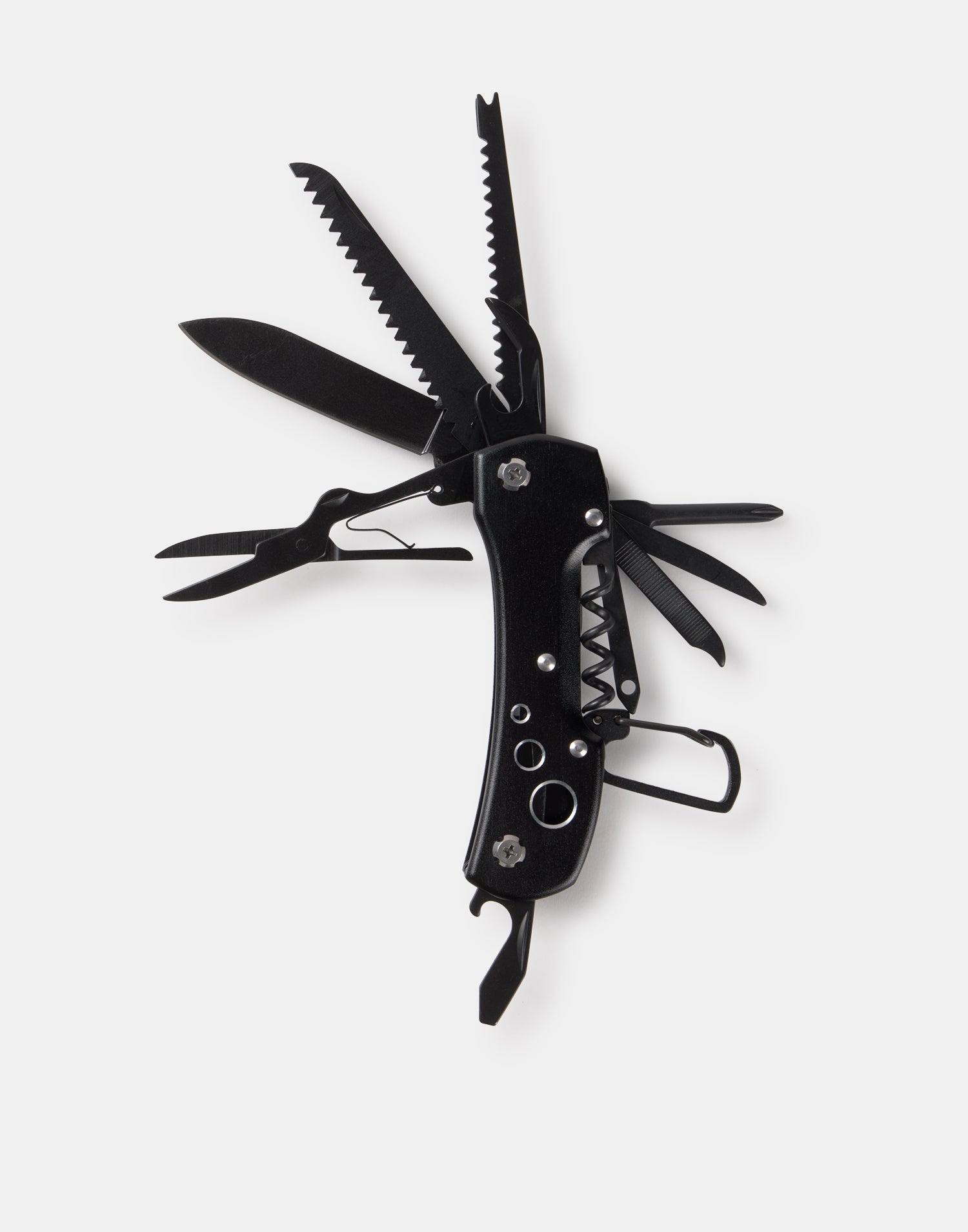 Couteau suisse avec 15 outils et mousqueton, un accessoire compact pour les tâches quotidiennes.