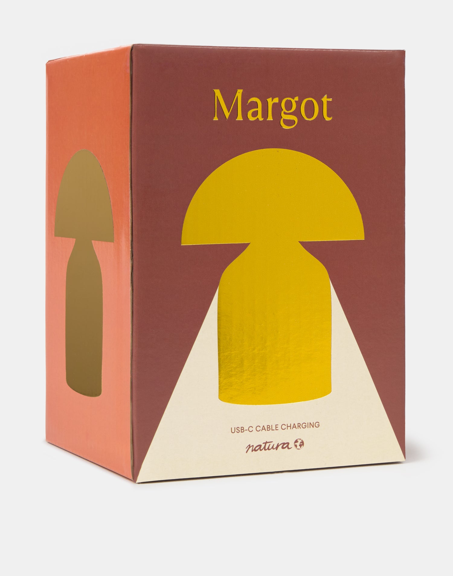 Petite lampe avec finition dorée. Équipée d’une batterie au lithium rechargeable via USB-C, offrant jusqu’à 10 heures d’utilisation continue. Commande tactile avec 3 tons de lumière (chaude, blanche et neutre) et réglage de la luminosité. Doit être chargée initialement pendant au moins 3,5 heures et ne pas être utilisée pendant la charge.