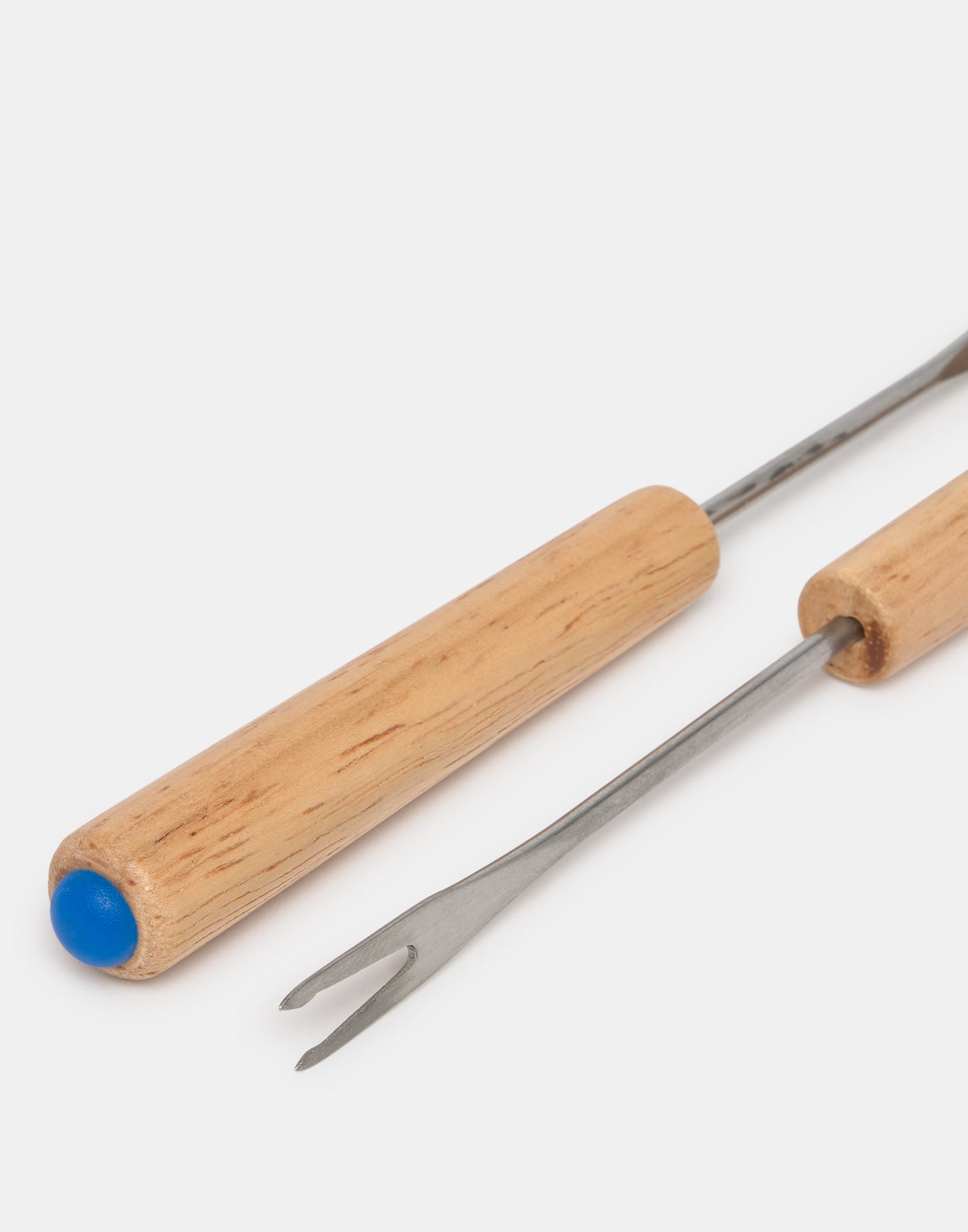 Comprend 4 fourchettes avec manche en bois et 4 bougies chauffe-plat.