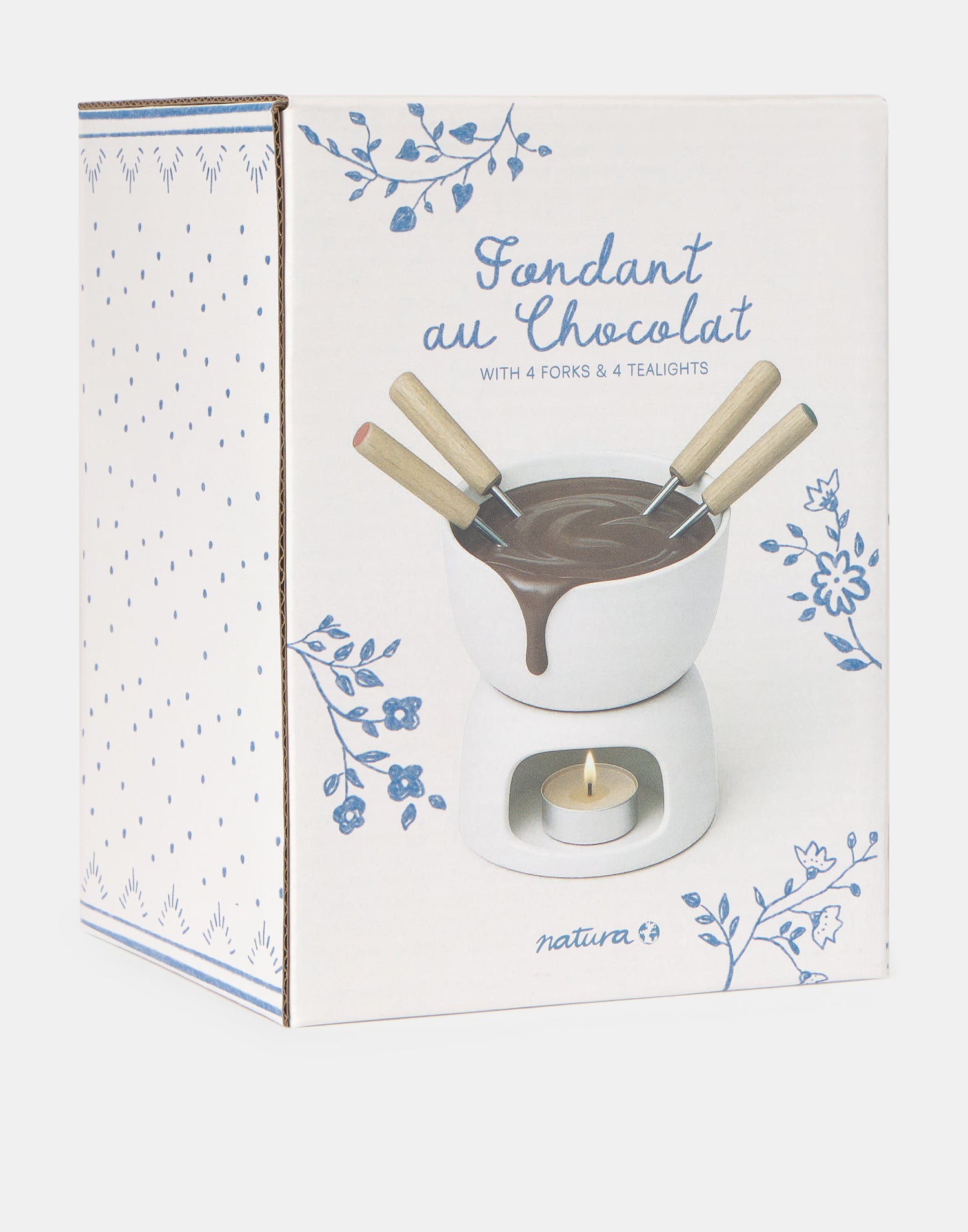 Allumez la bougie et mettez votre chocolat préféré dans le bol à fondue. Idéal pour les desserts, les occasions spéciales et comme cadeau.