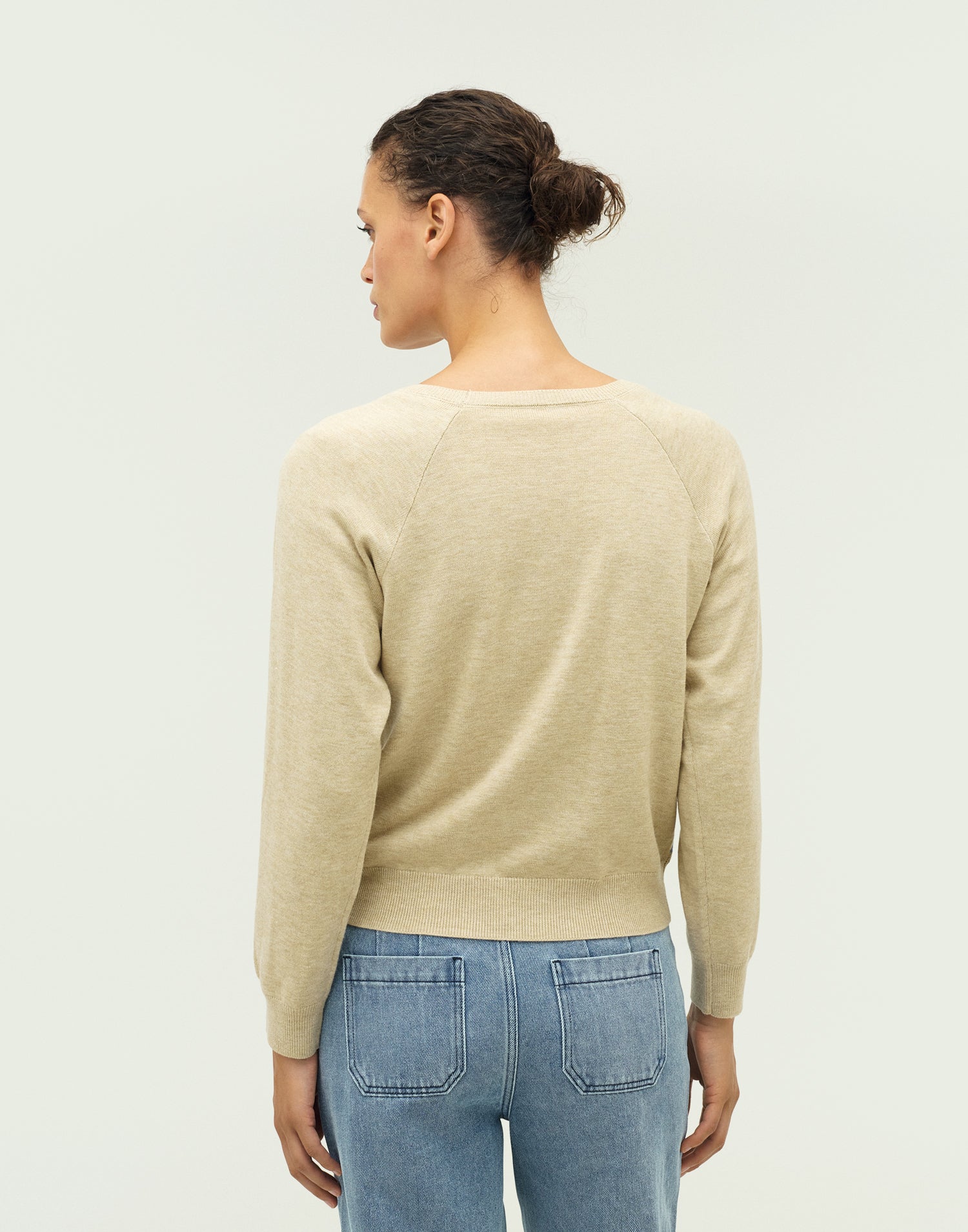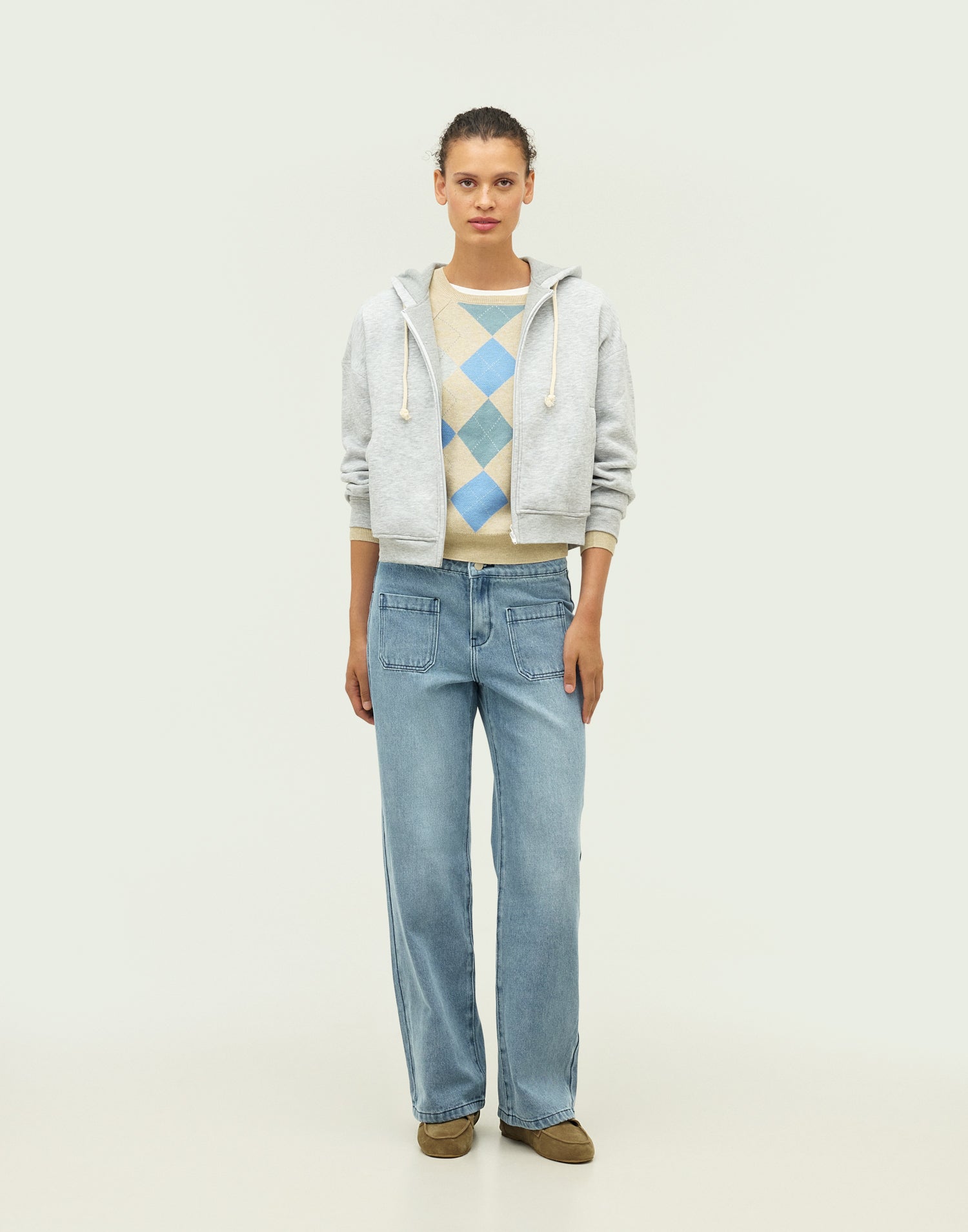 Le mannequin mesure 1,79 m et porte la taille M.
