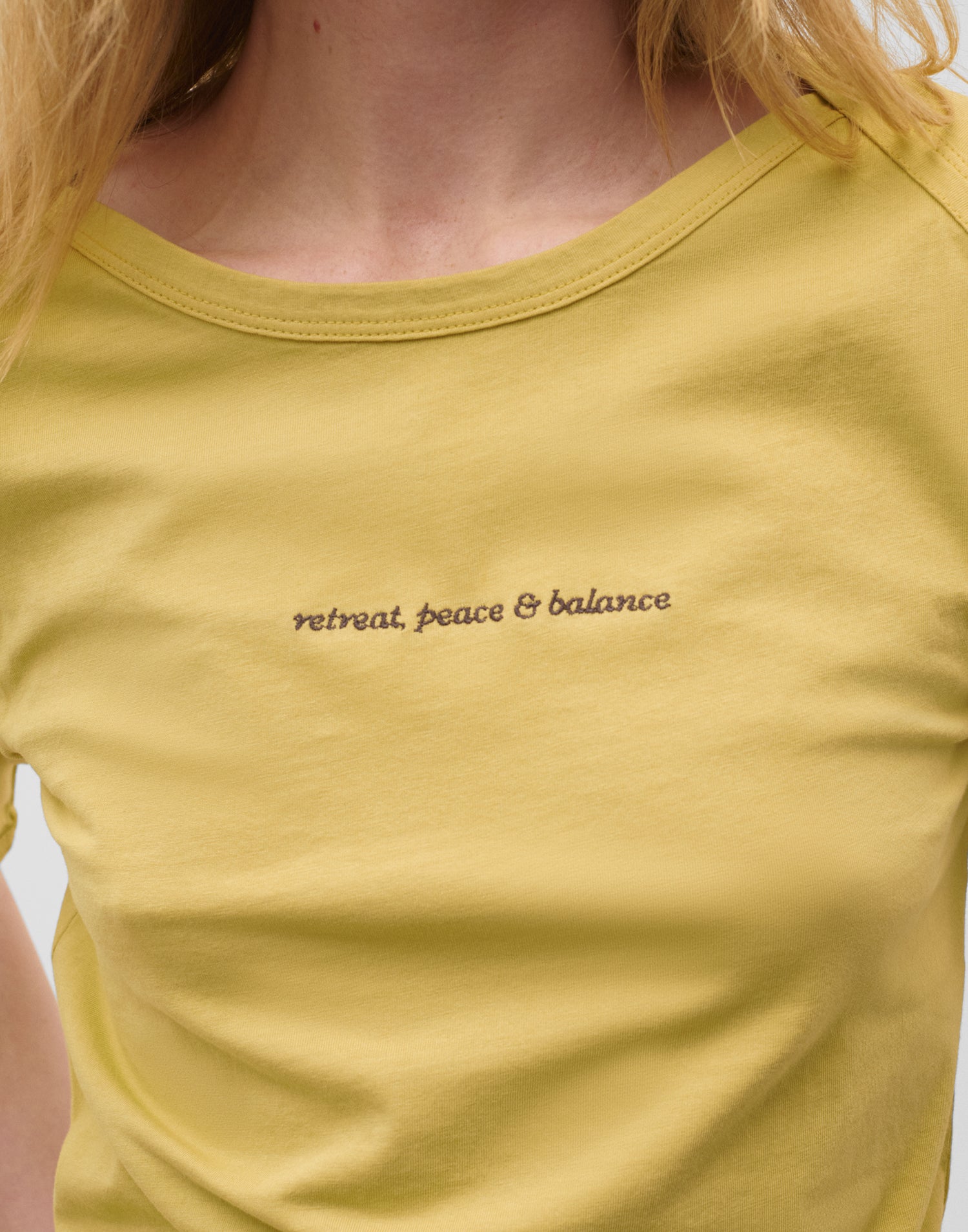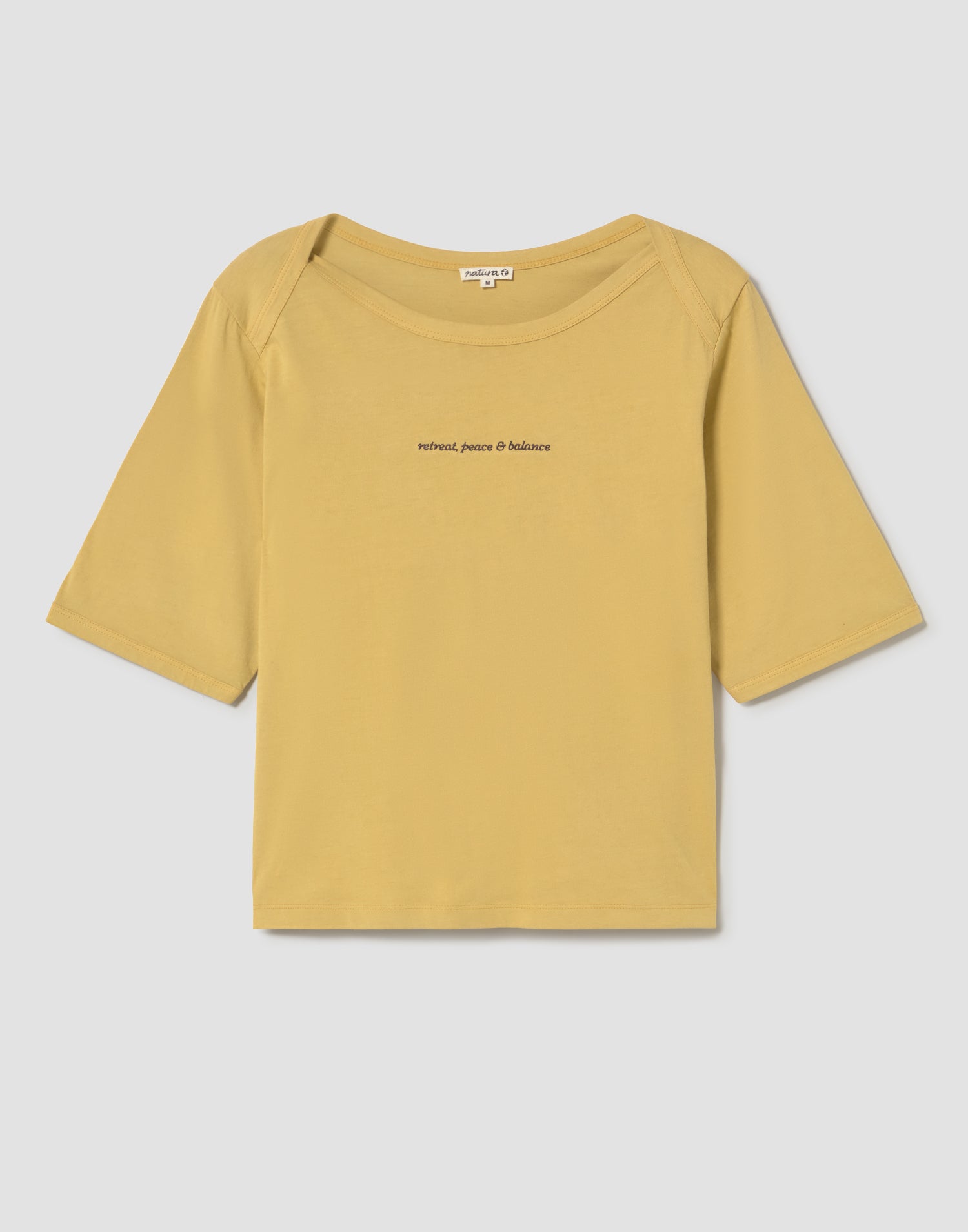 T-shirt en coton à manches courtes et col rond. Détail de texte brodé en contraste.