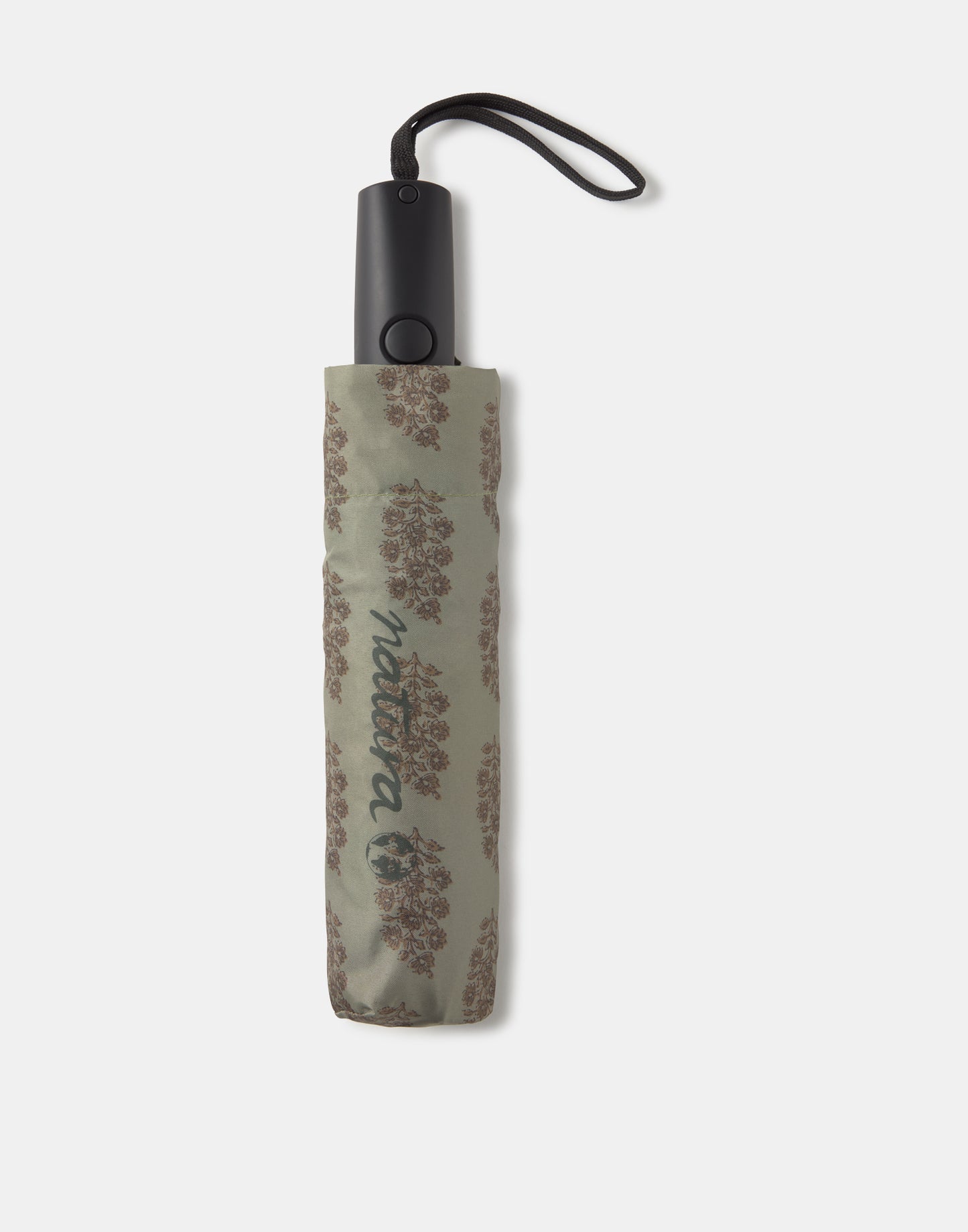 Parapluie pliable automatique avec un design inspiré de l'imprimé indien block print et une housse assortie.