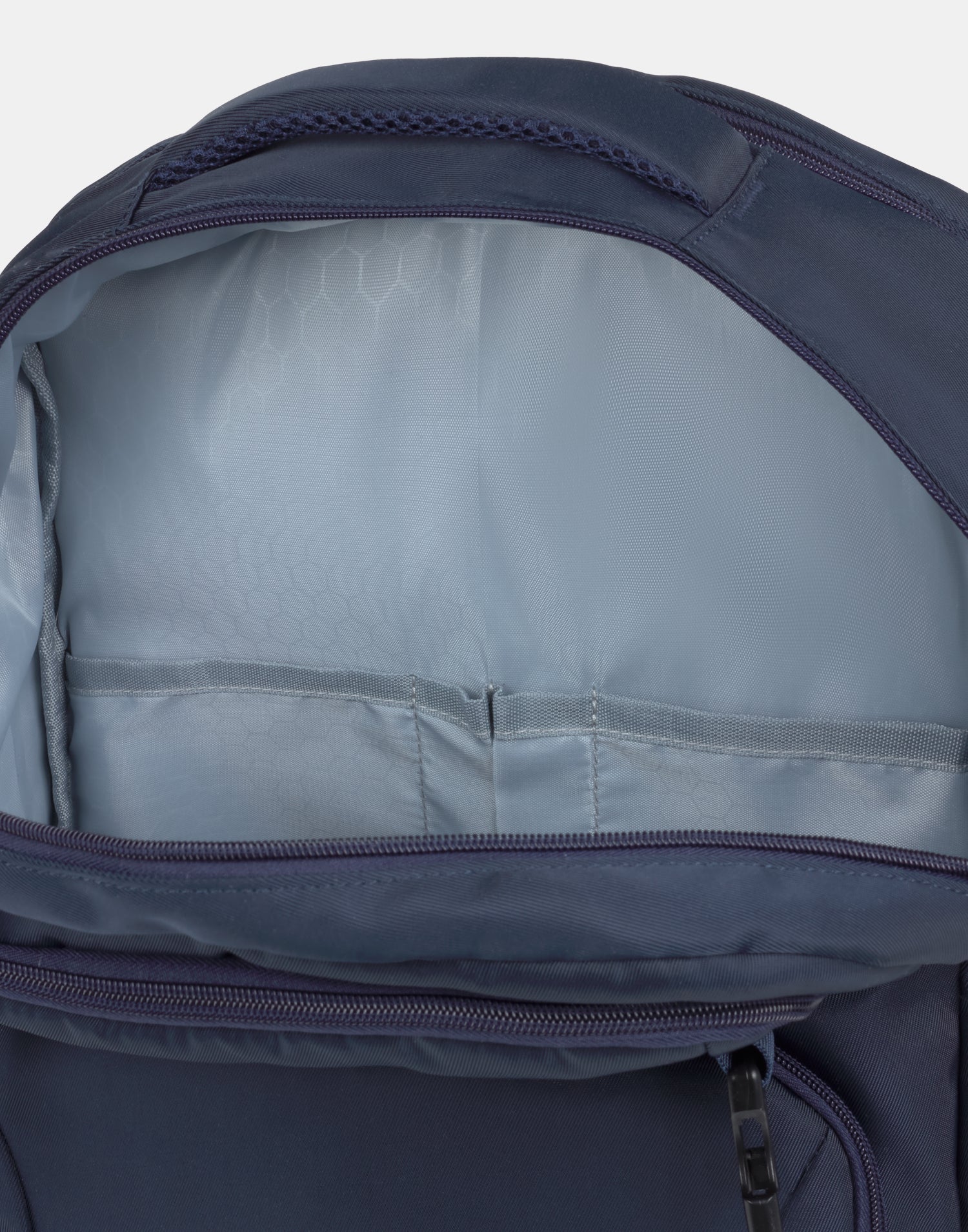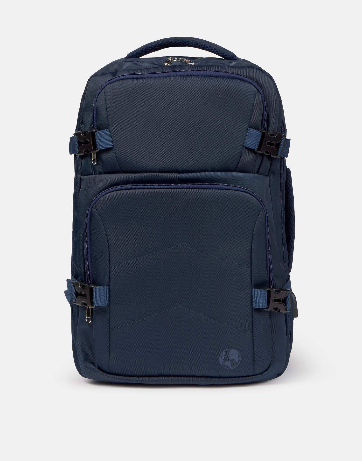 Sac à dos idéal comme bagage à main lors de voyages en avion. Confectionné en polyester de haute qualité, il dispose d’une poignée supérieure et latérale, de bretelles renforcées, de sangles latérales pour ajuster la capacité, d’un port USB et d’une bande arrière pour le fixer à la poignée de votre valise. Intérieur compartimenté et poches extérieures.