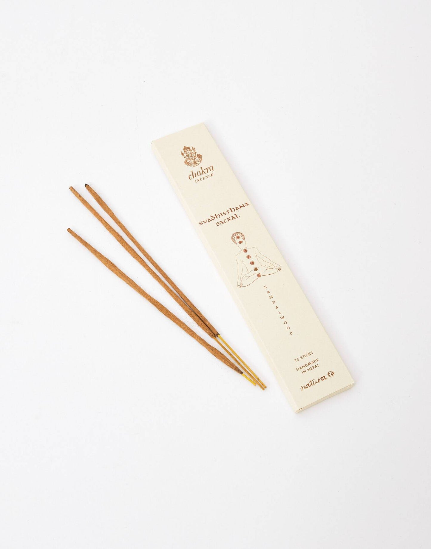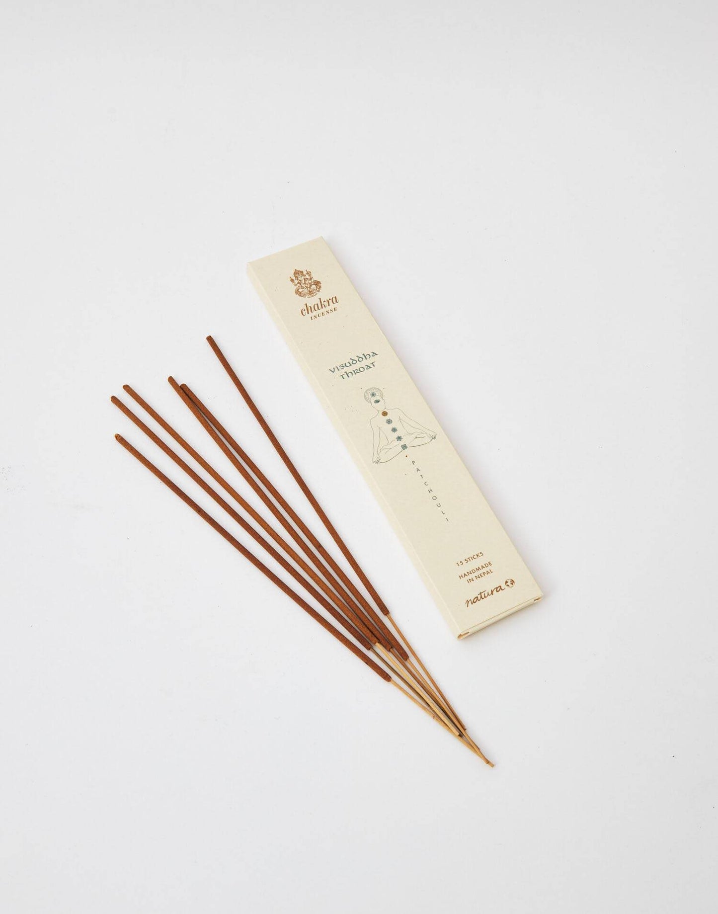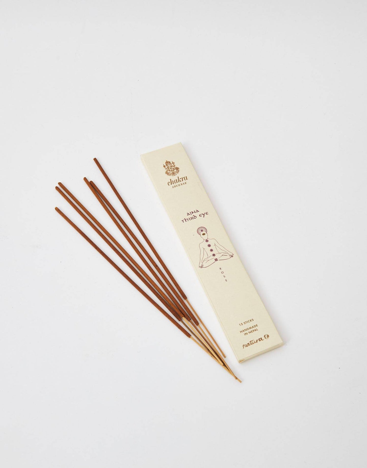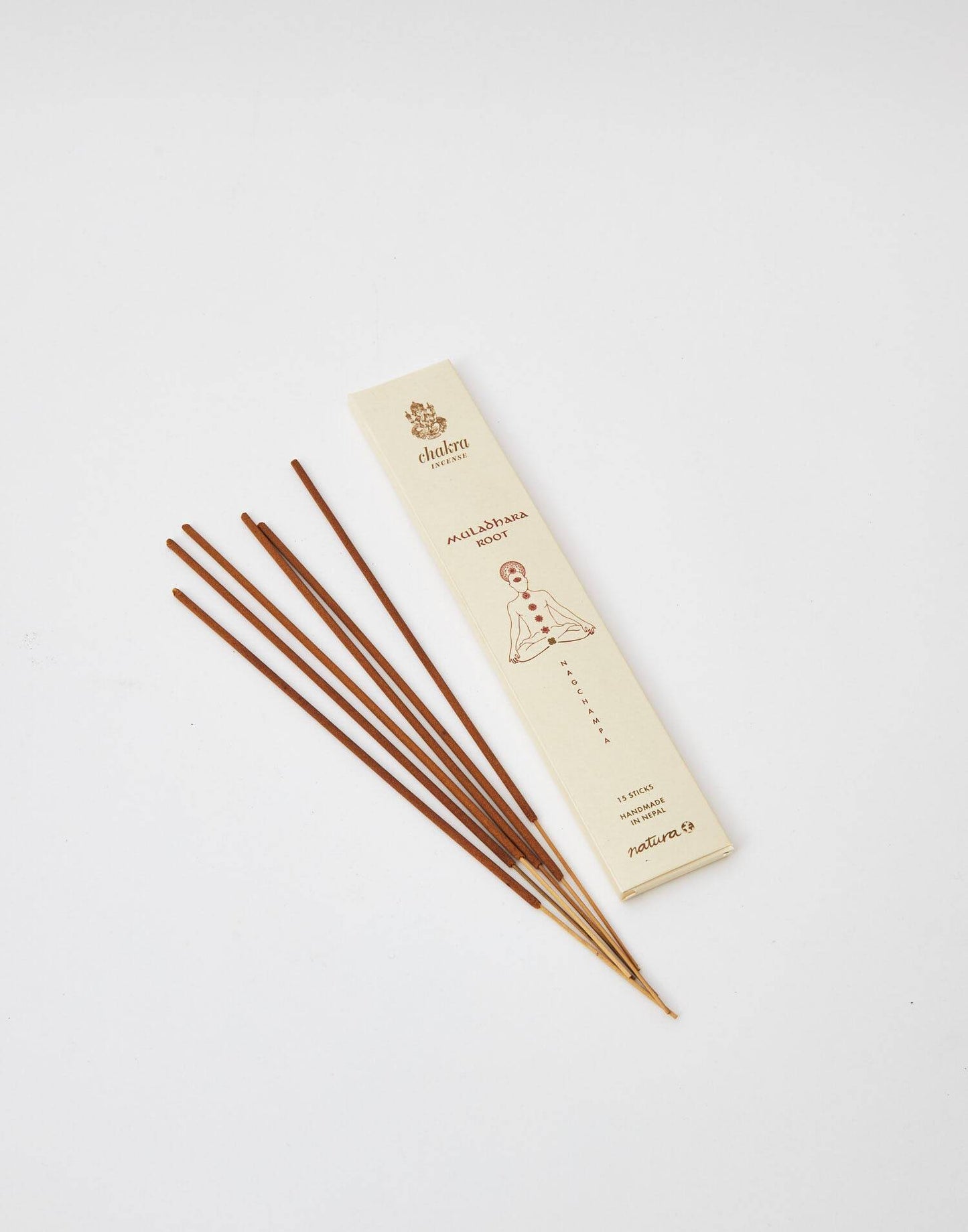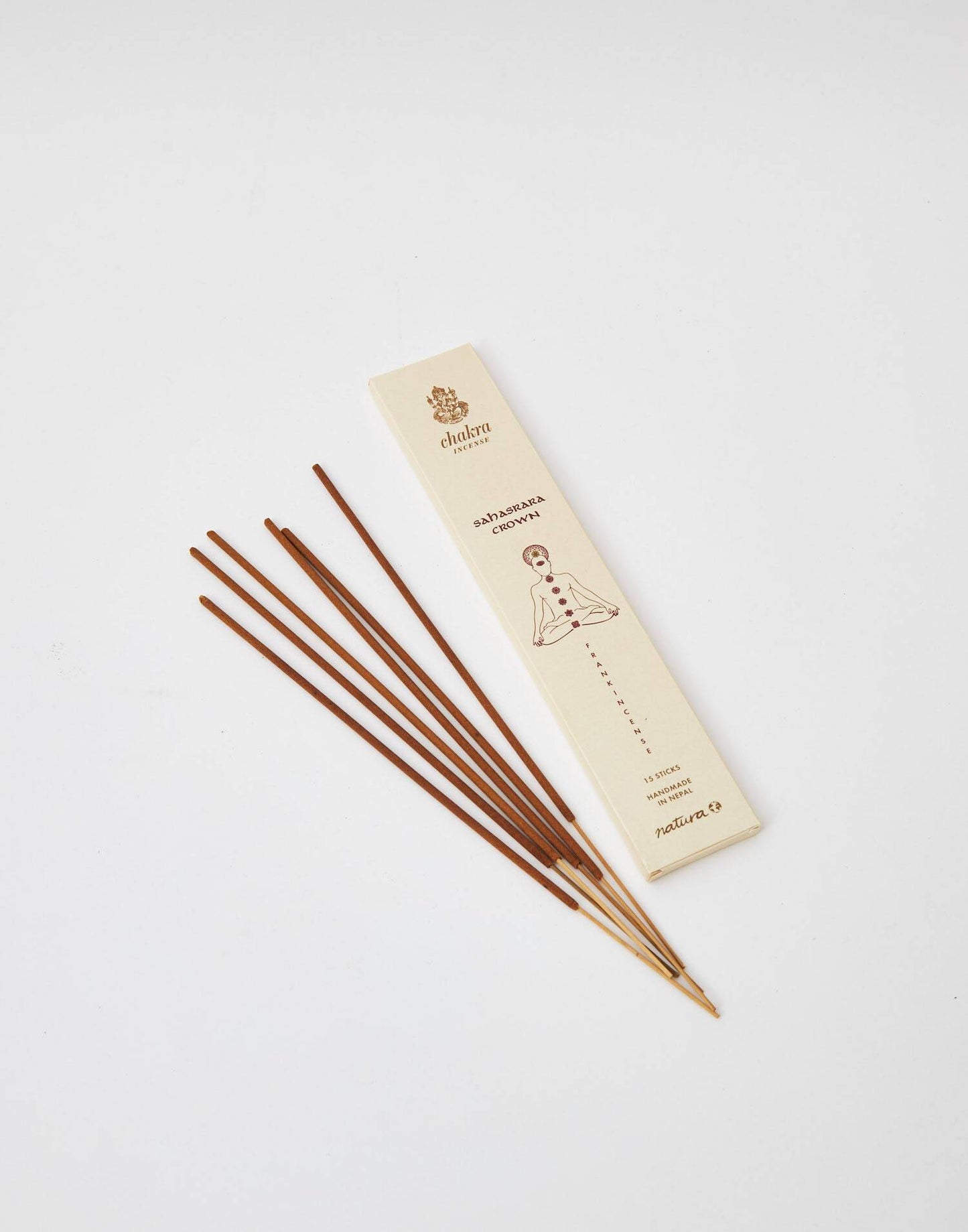 Collection des encens avec 15 bâtons, fabriqués à la main au Népal. Chaque chakra correspond à un arôme spécifique:
