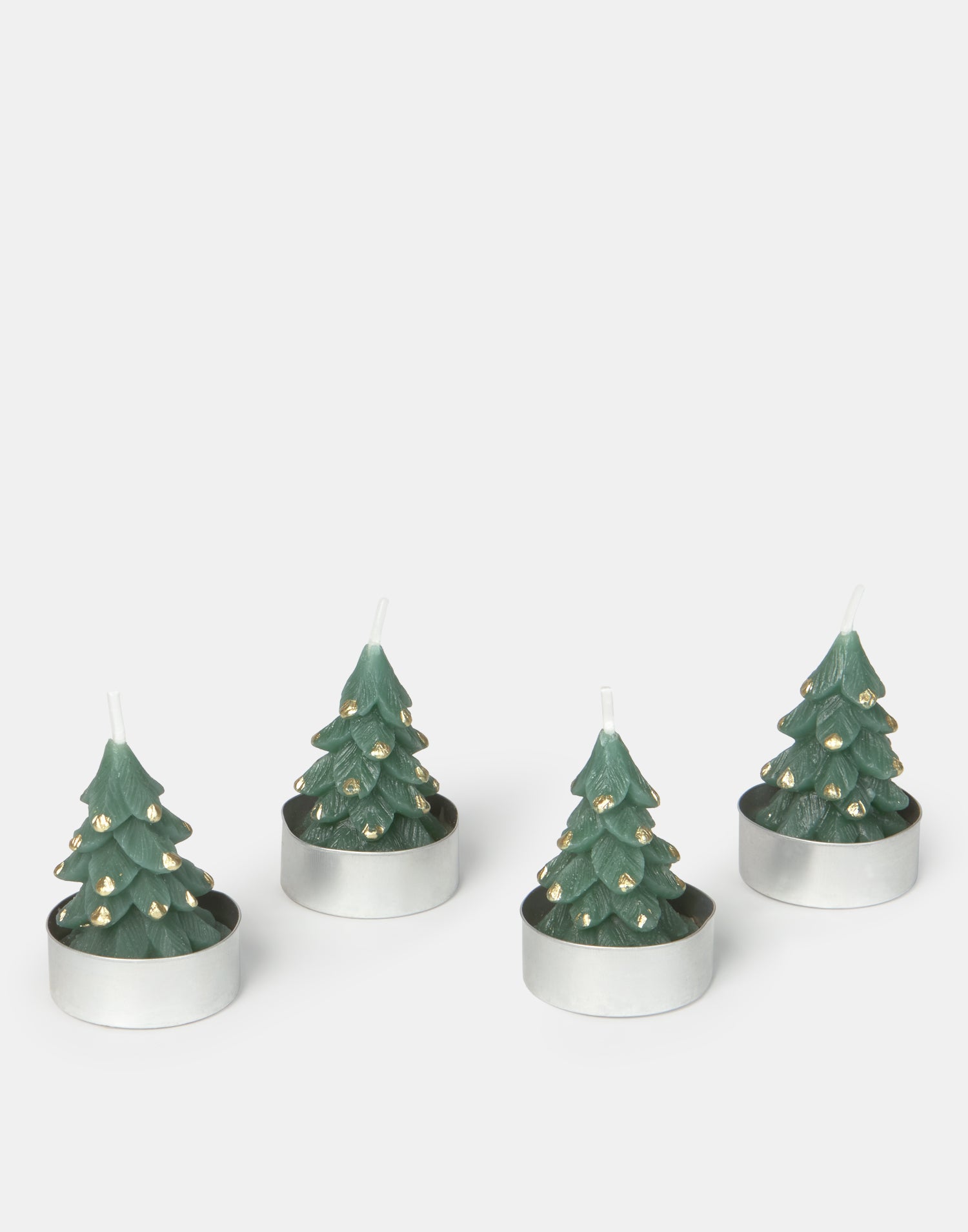 Set de 4 petites bougies en paraffine en forme de sapin de Noël.