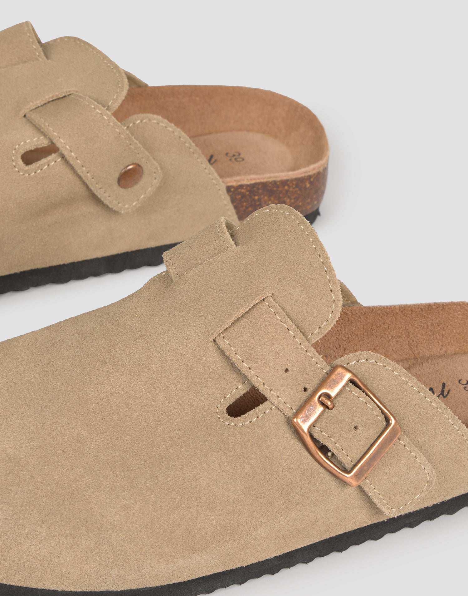 Extérieur et semelle intérieure en cuir de vache, doublure 100% polyester et semelle extérieure en liège et EVA