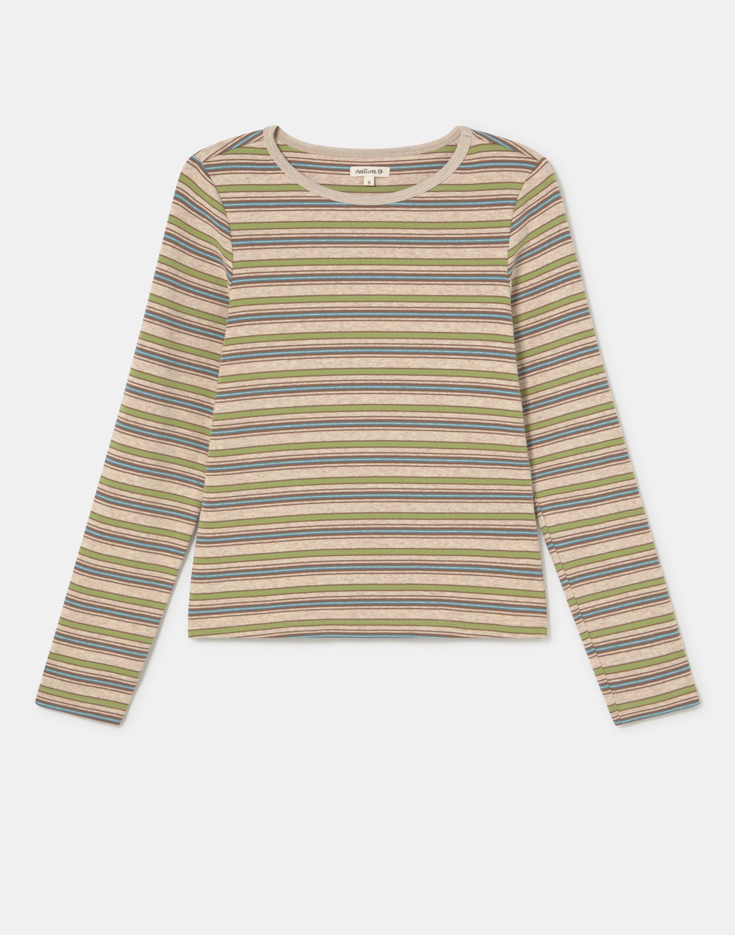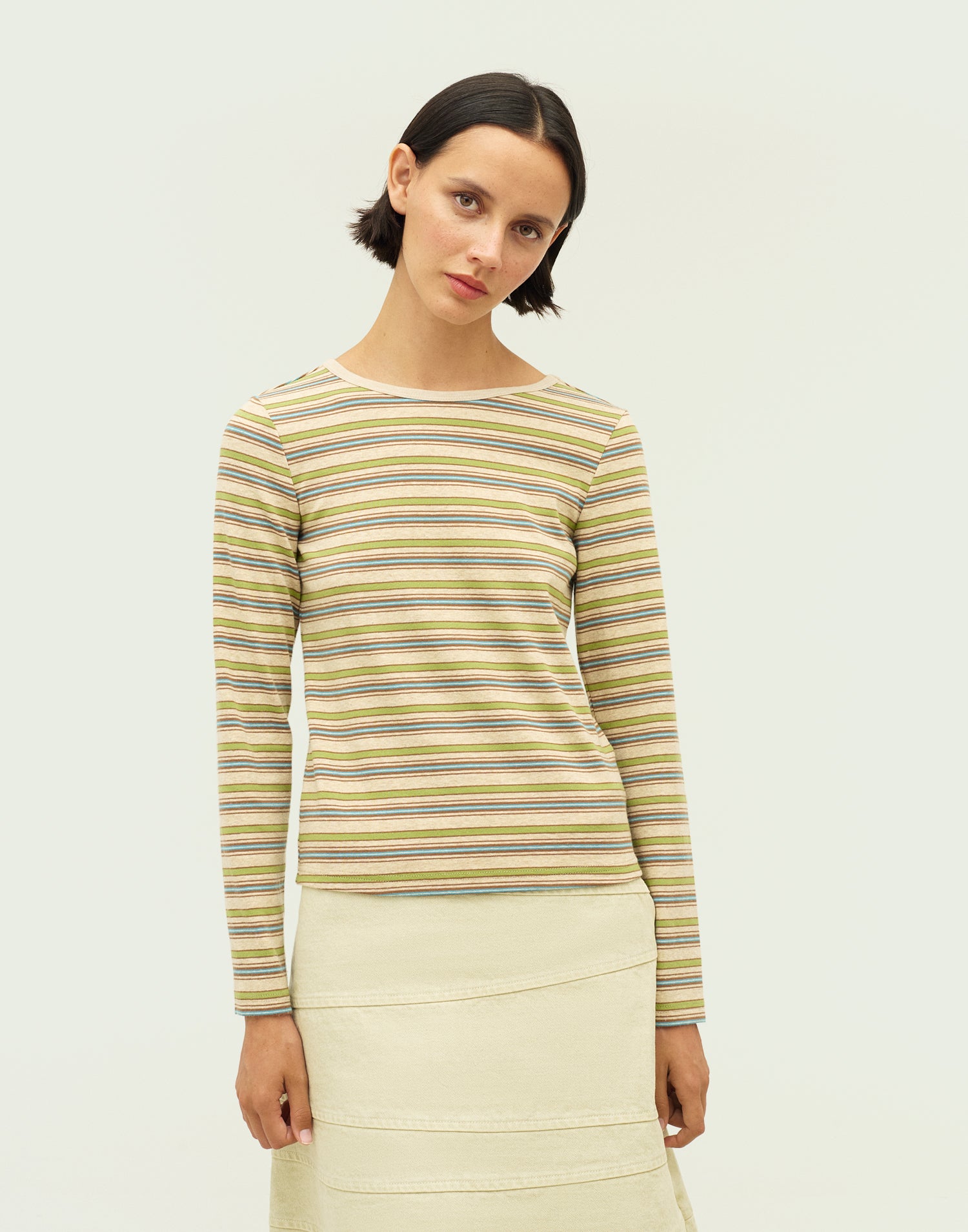 T-shirt rayé en mélange de coton, manches longues et col rond.