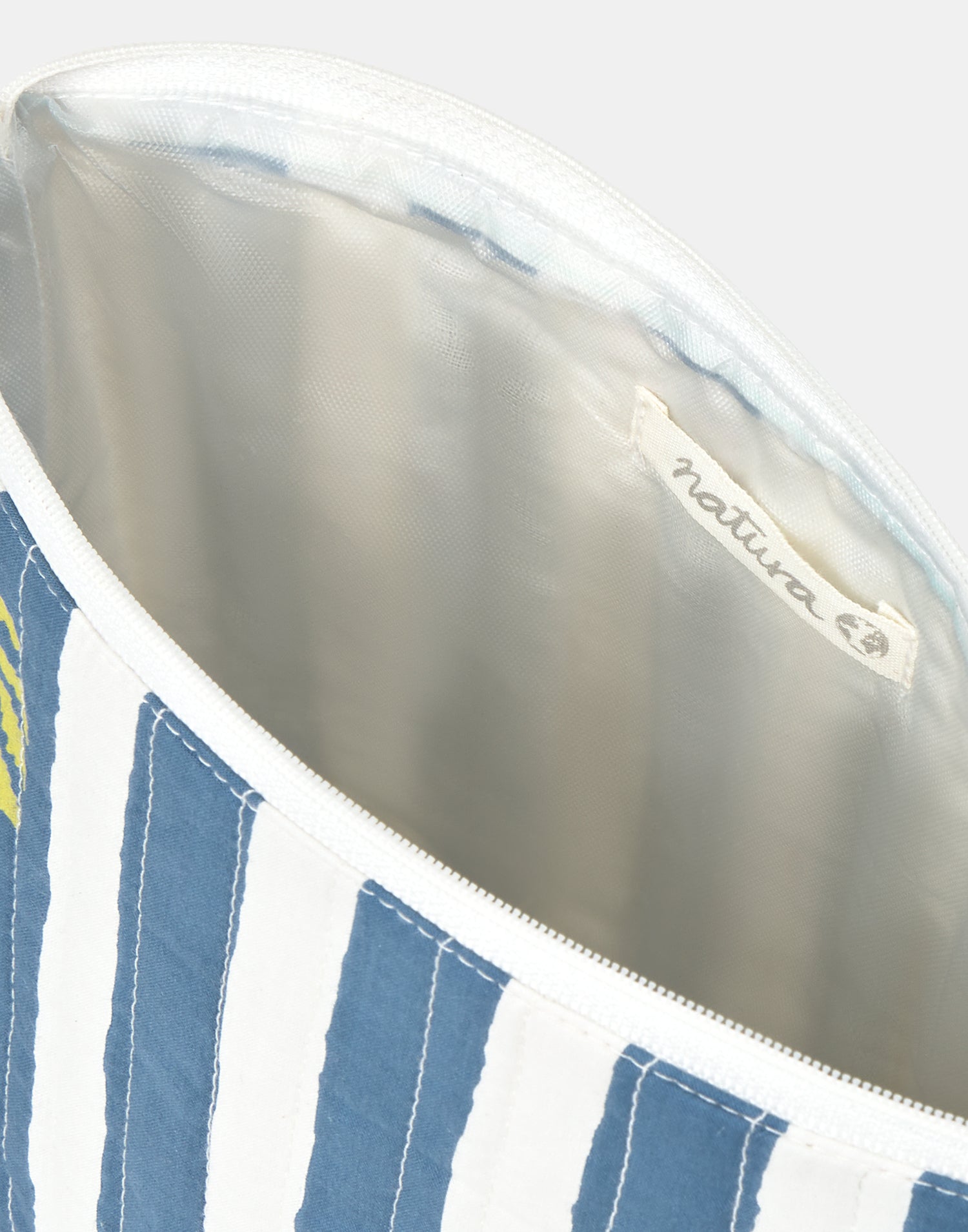 Trousse de toilette imprimée avec intérieur plastifié et fermeture zippée.