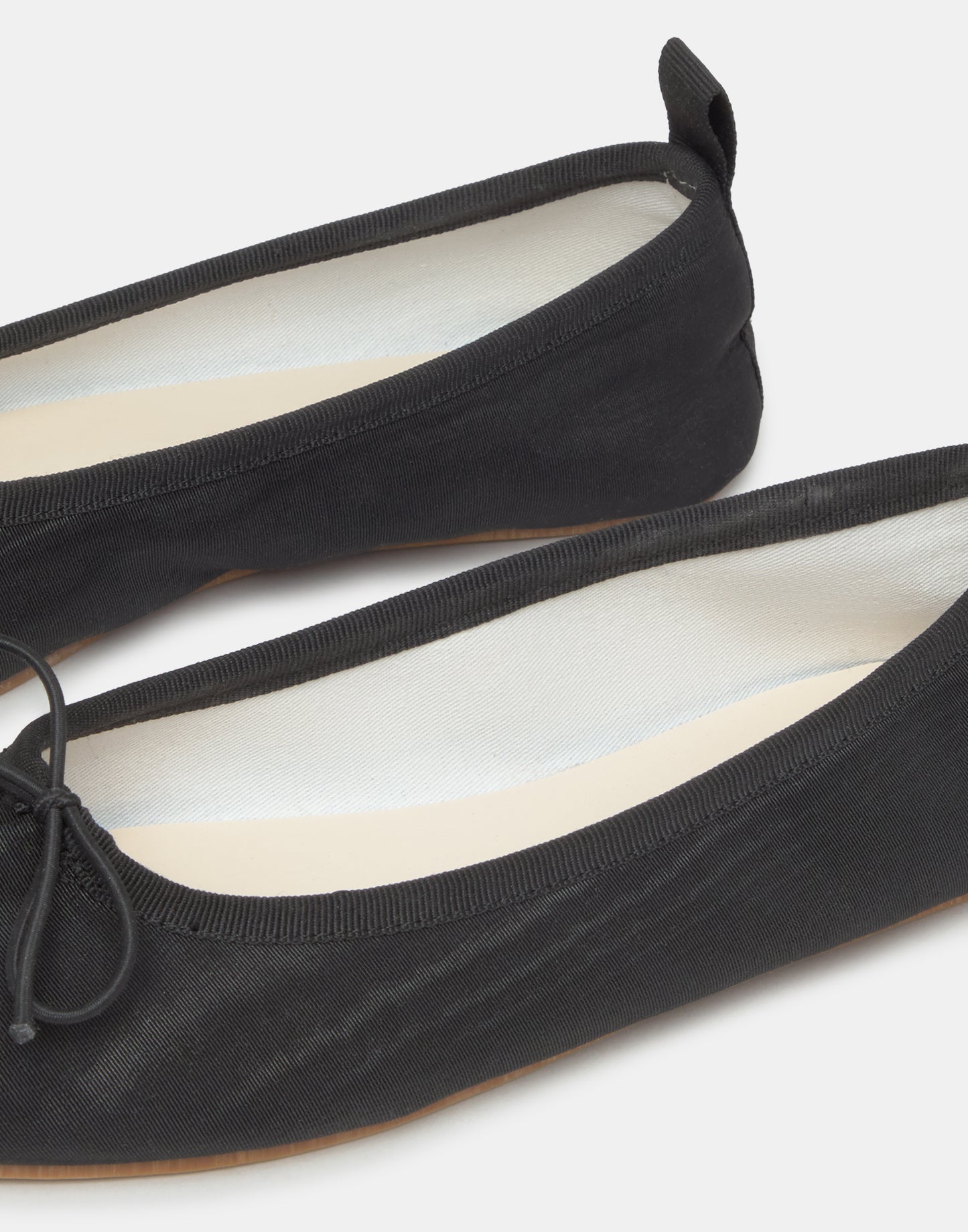 Ballerine con punta rotonda, fiocco decorativo e cinturino sul retro.