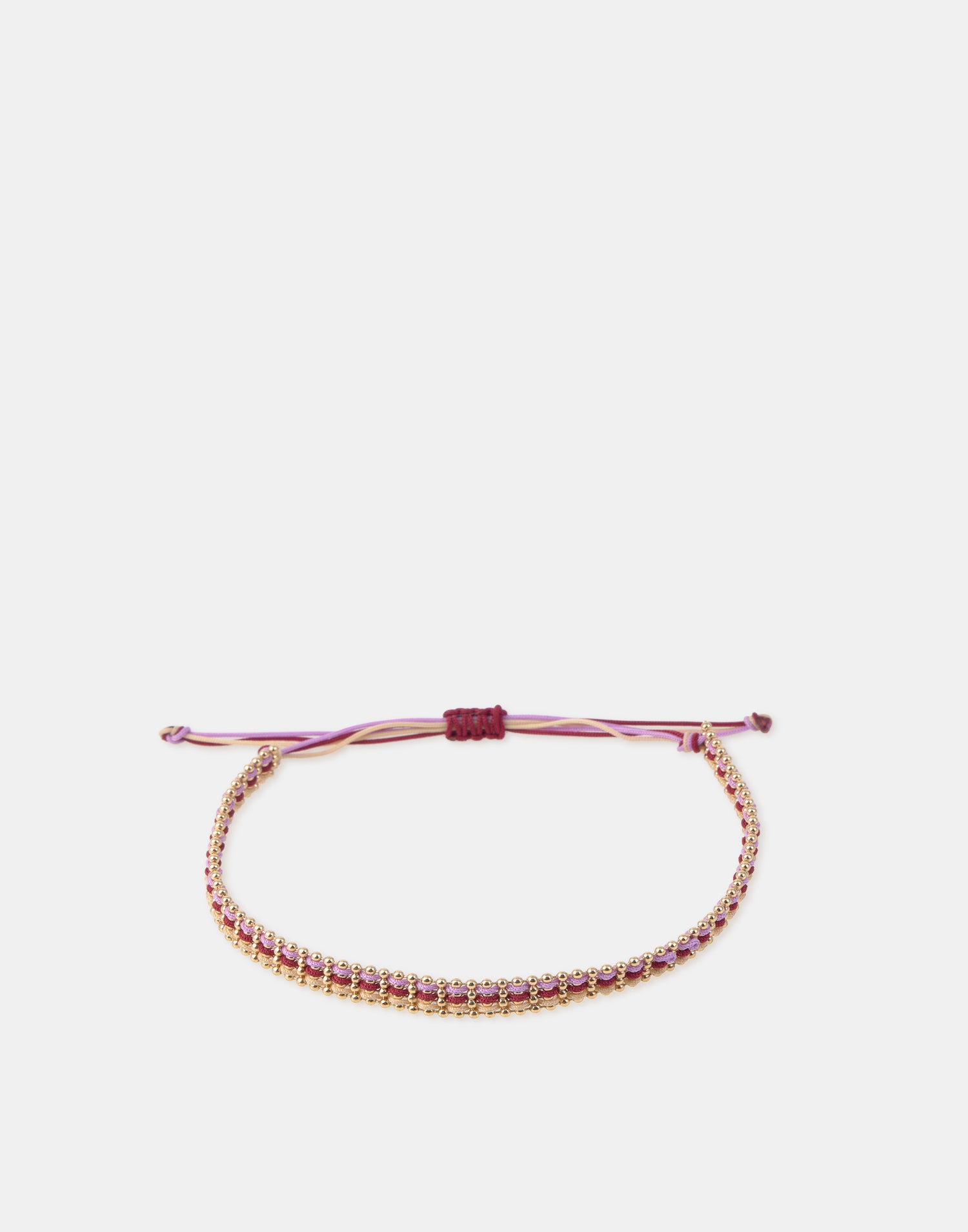 Bracciale in filo con dettaglio di perline e chiusura a nodo scorrevole.