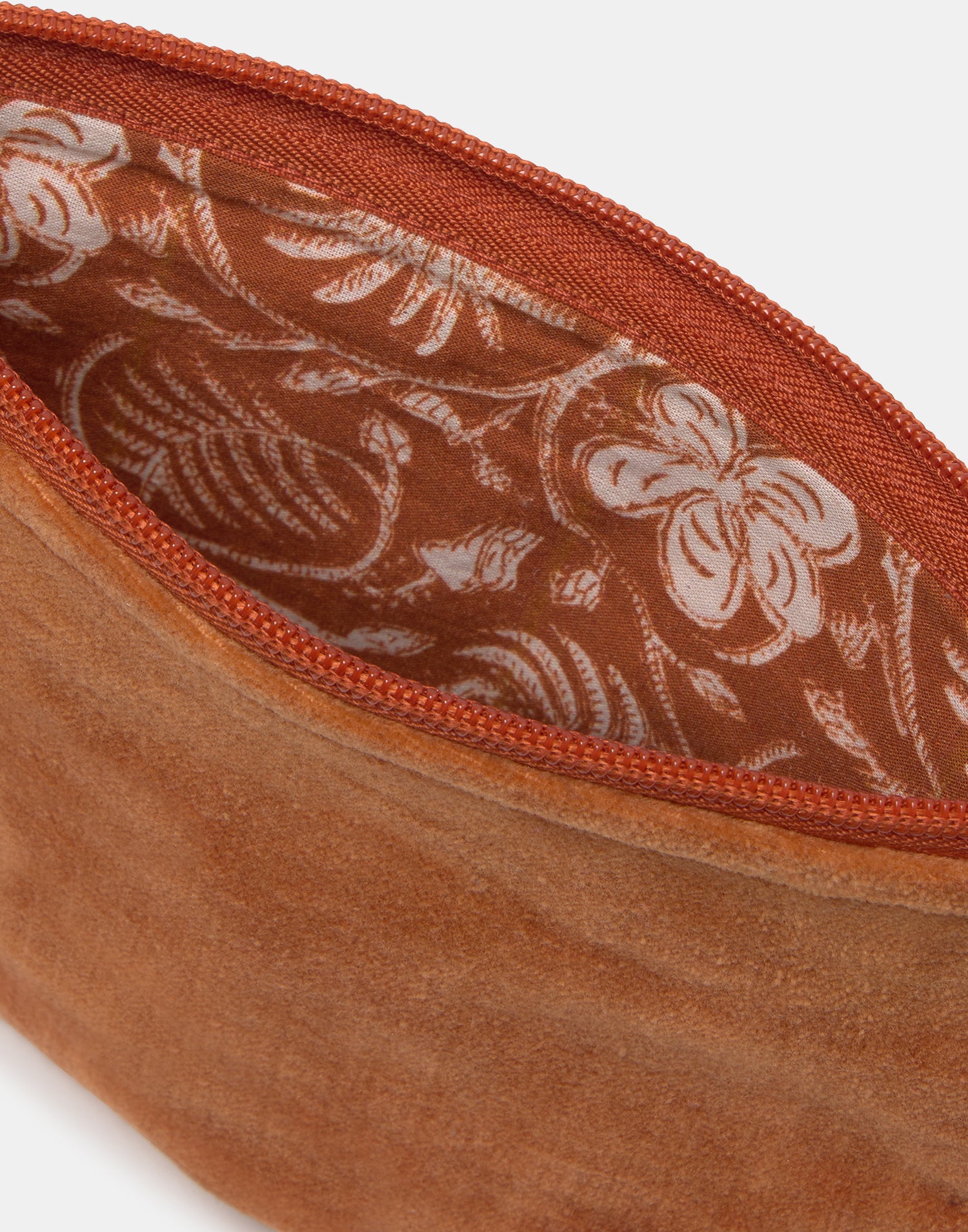 Necessaire in cotone con chiusura con cerniera e fodera interna stampata a contrasto.