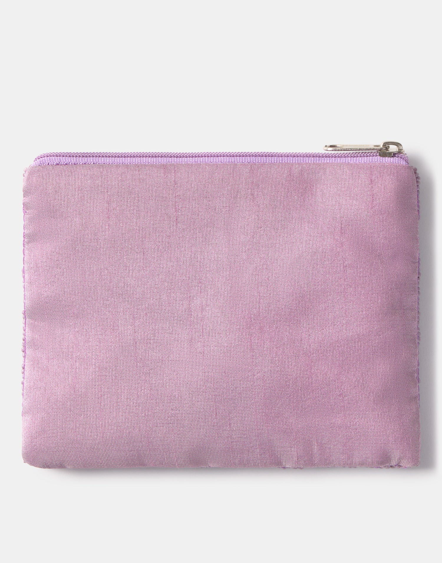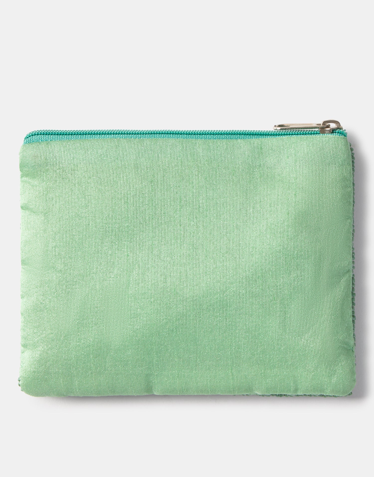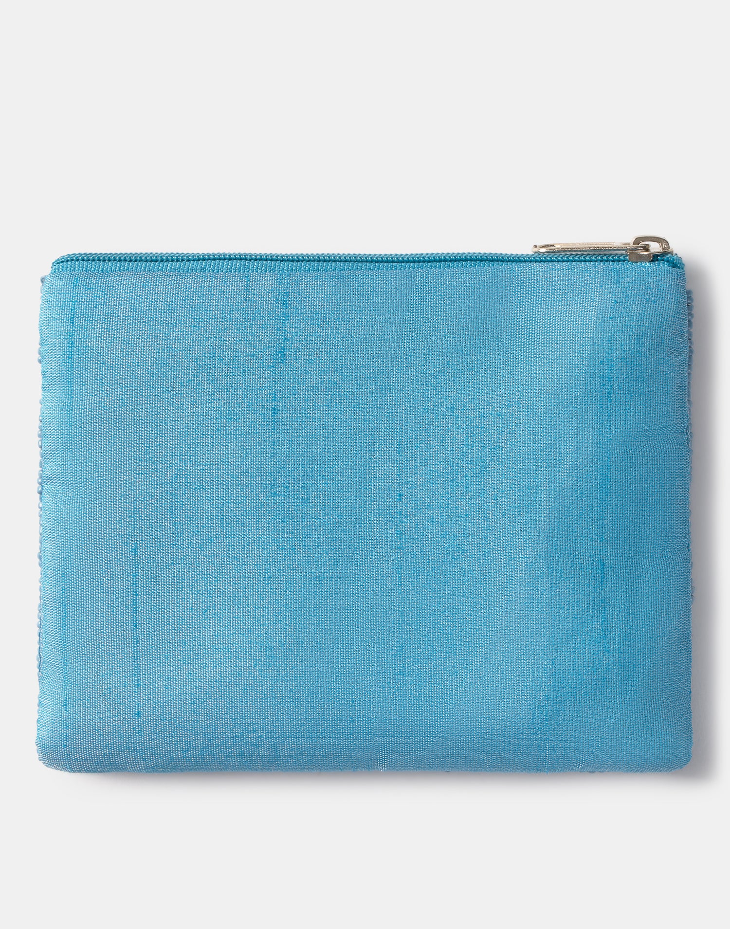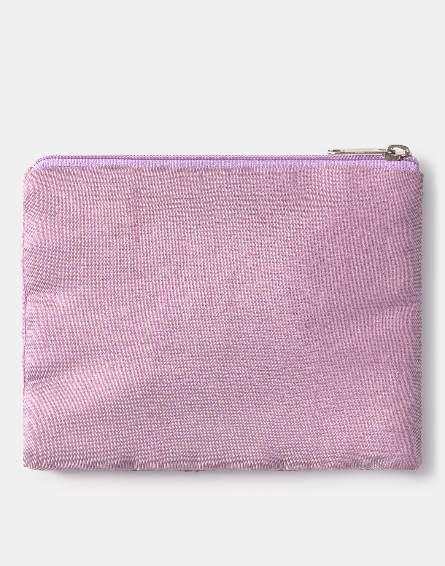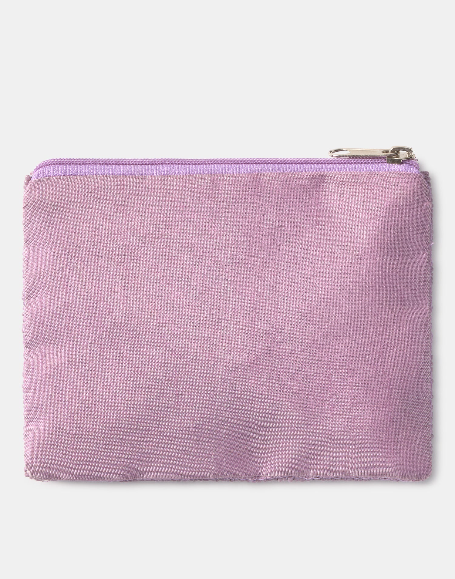Piccolo astuccio multiuso con chiusura a zip superiore. Parte frontale decorata con iniziali realizzate con perline di vetro.