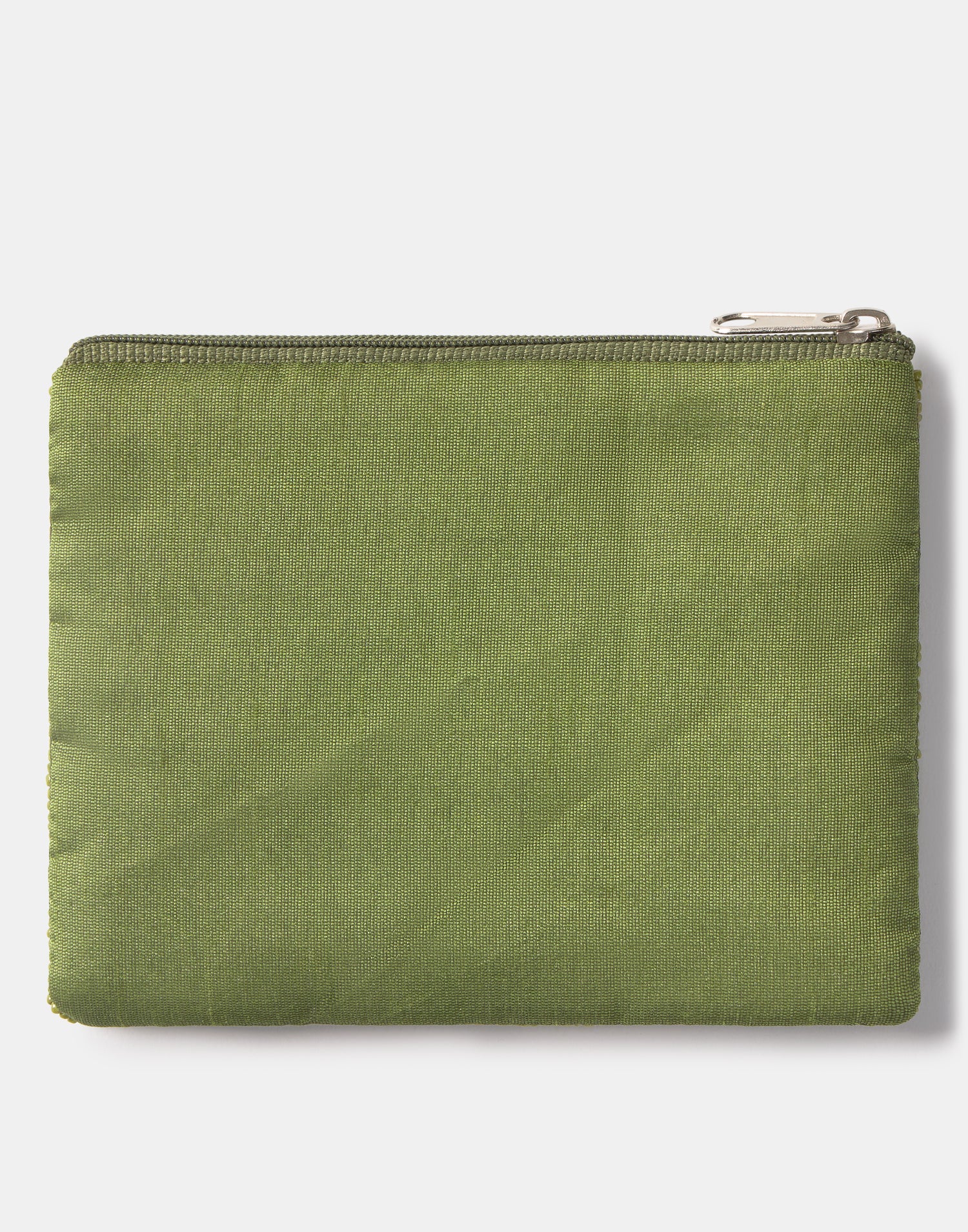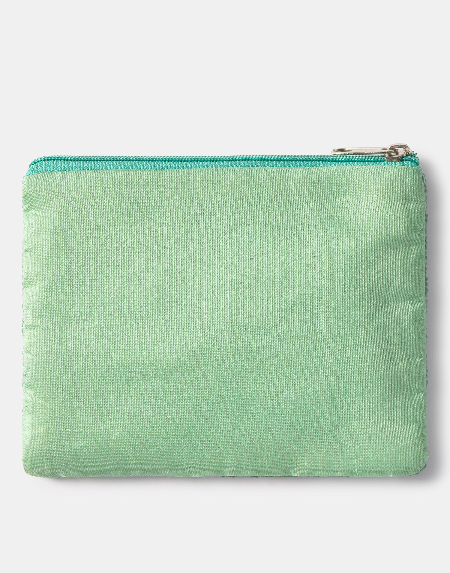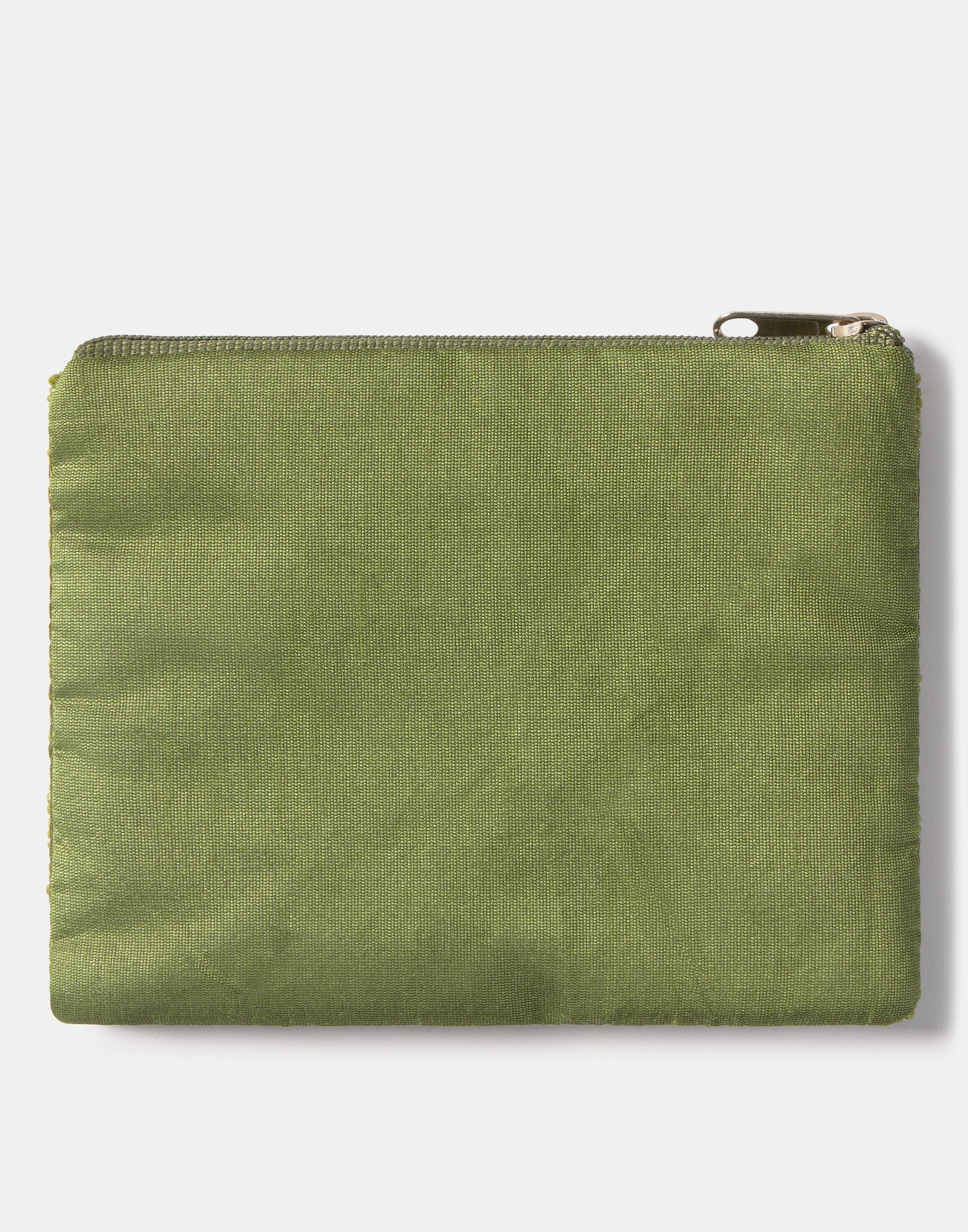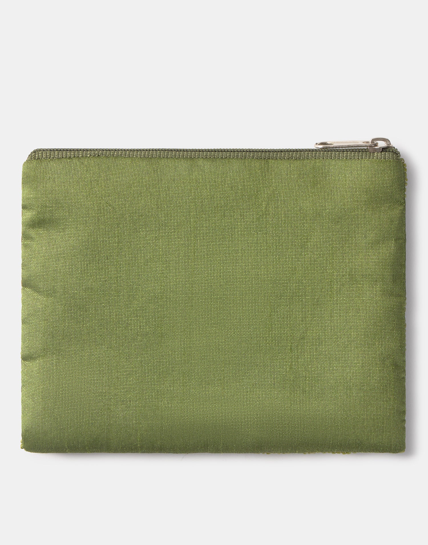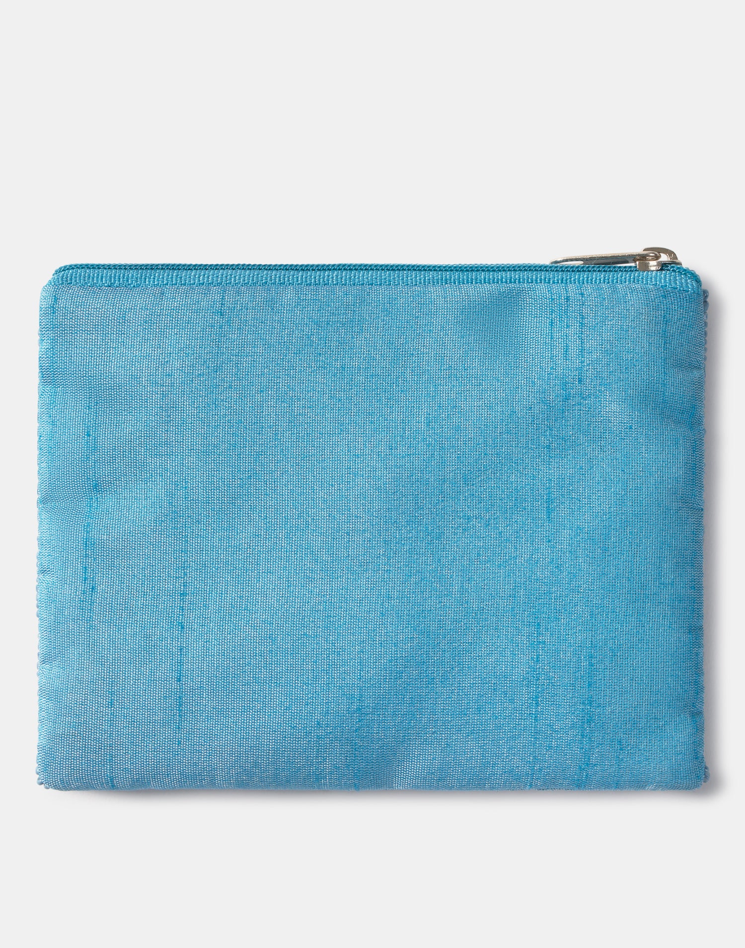 Piccolo astuccio multiuso con chiusura a zip superiore. Parte frontale decorata con iniziali realizzate con perline di vetro.