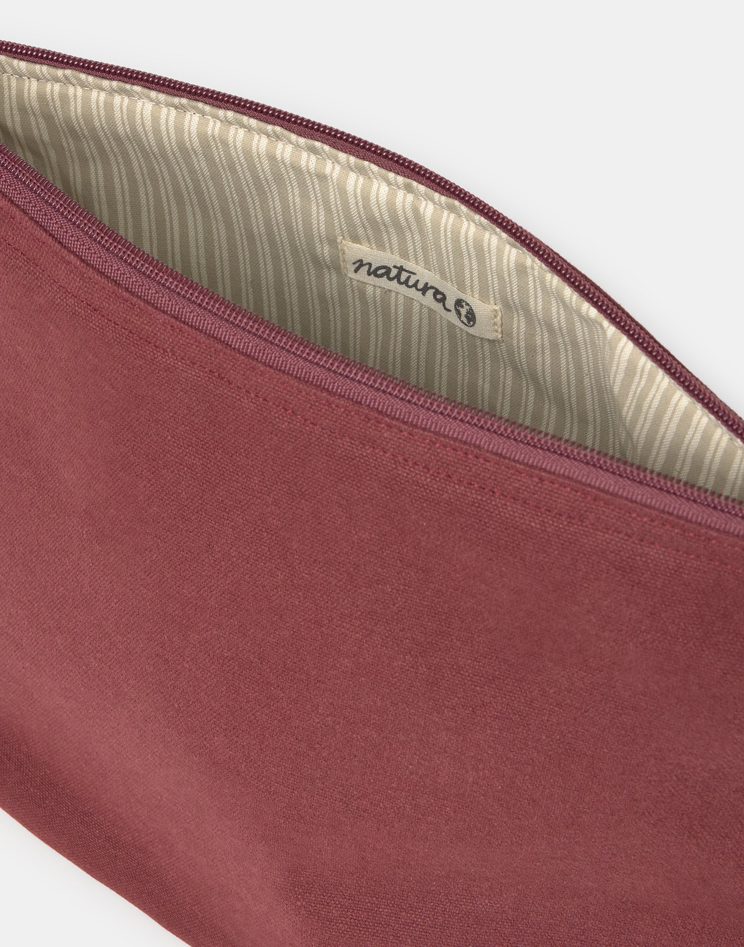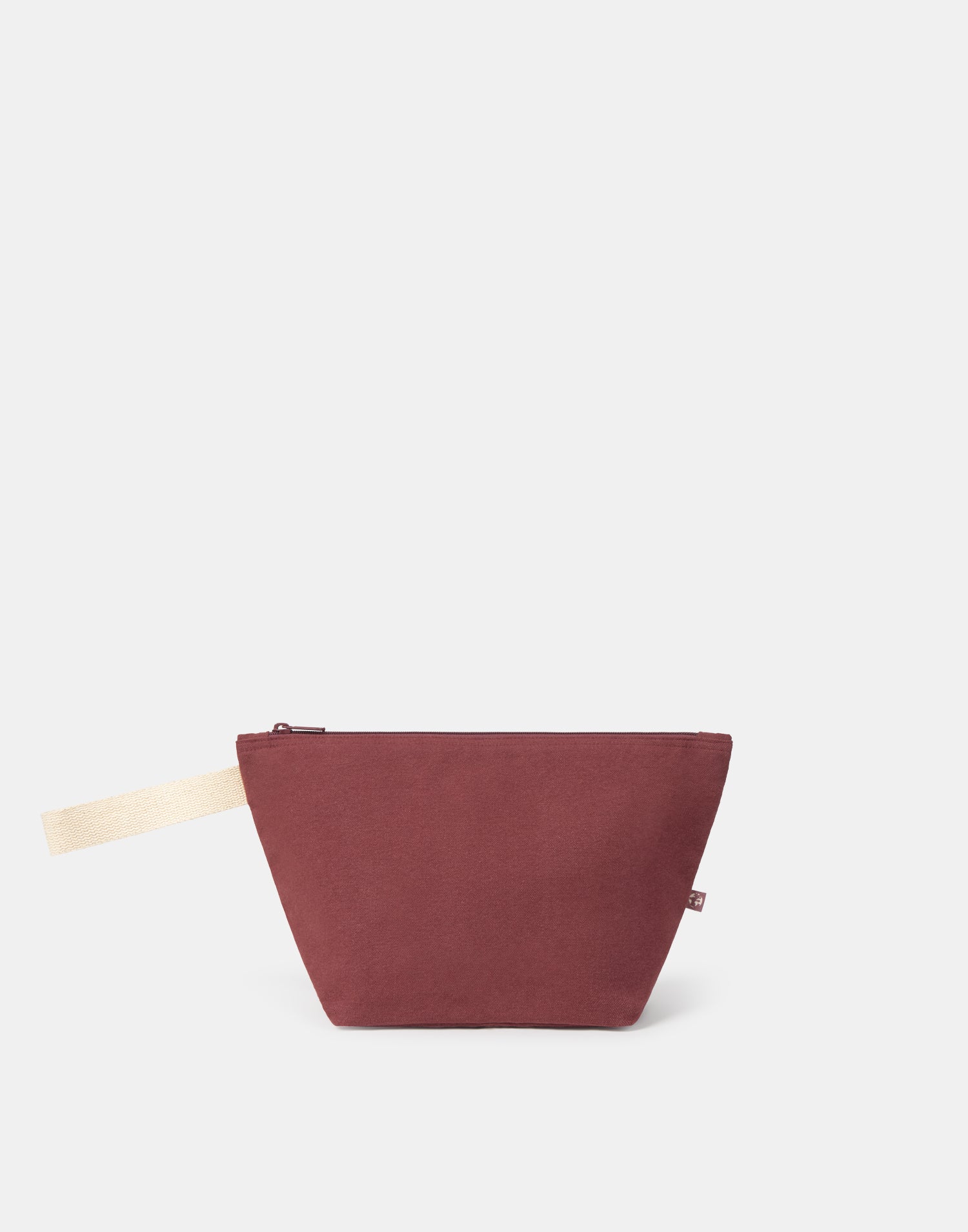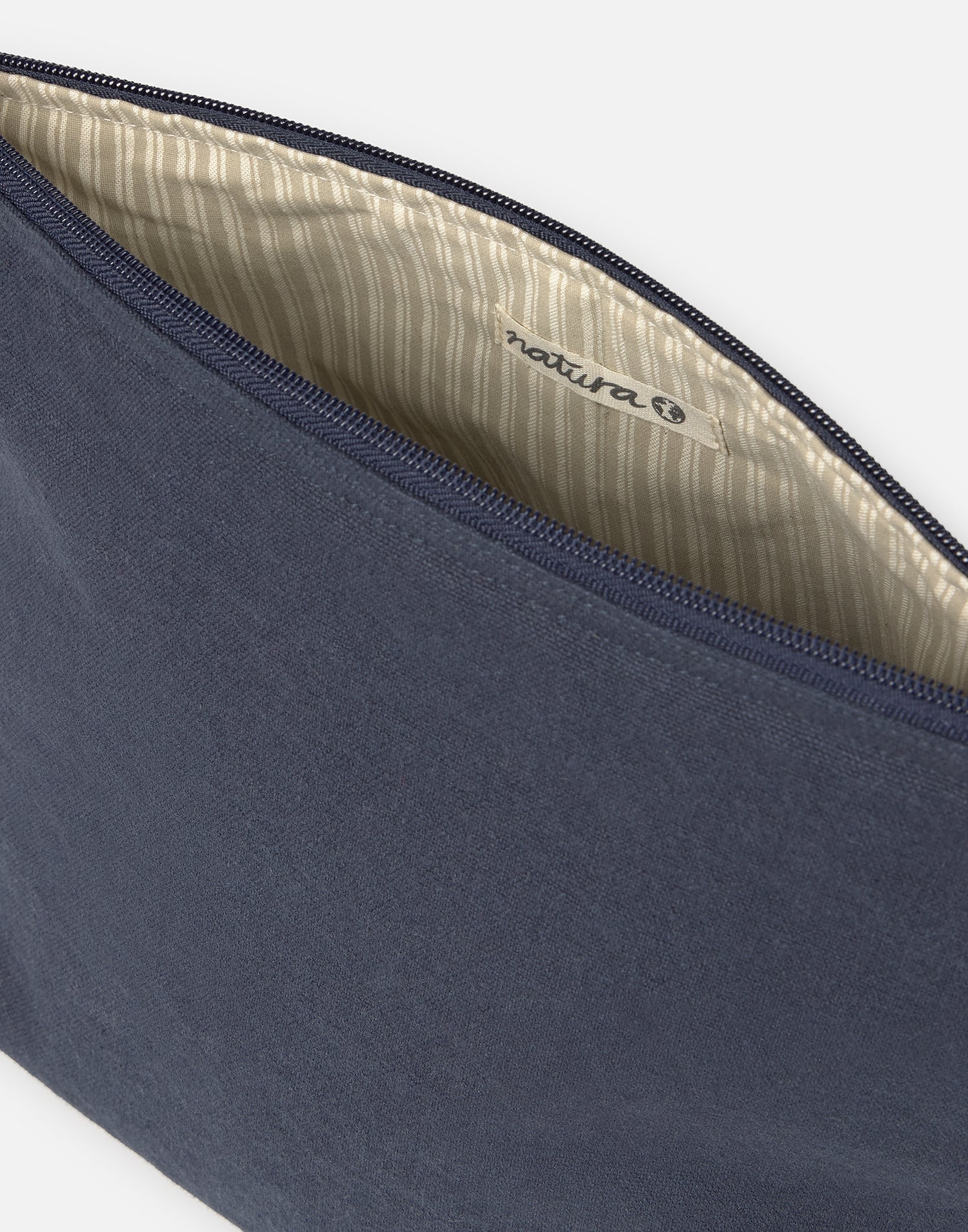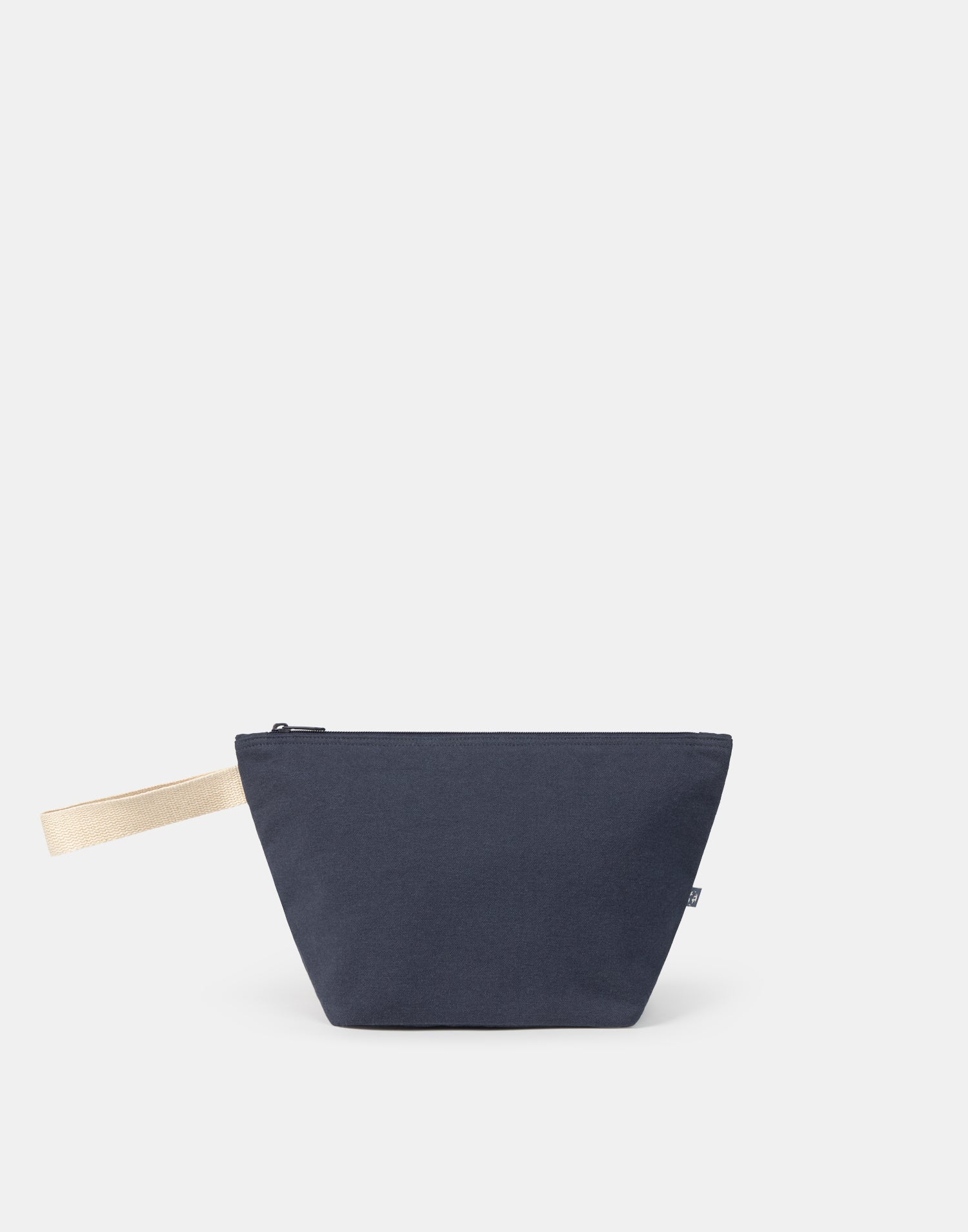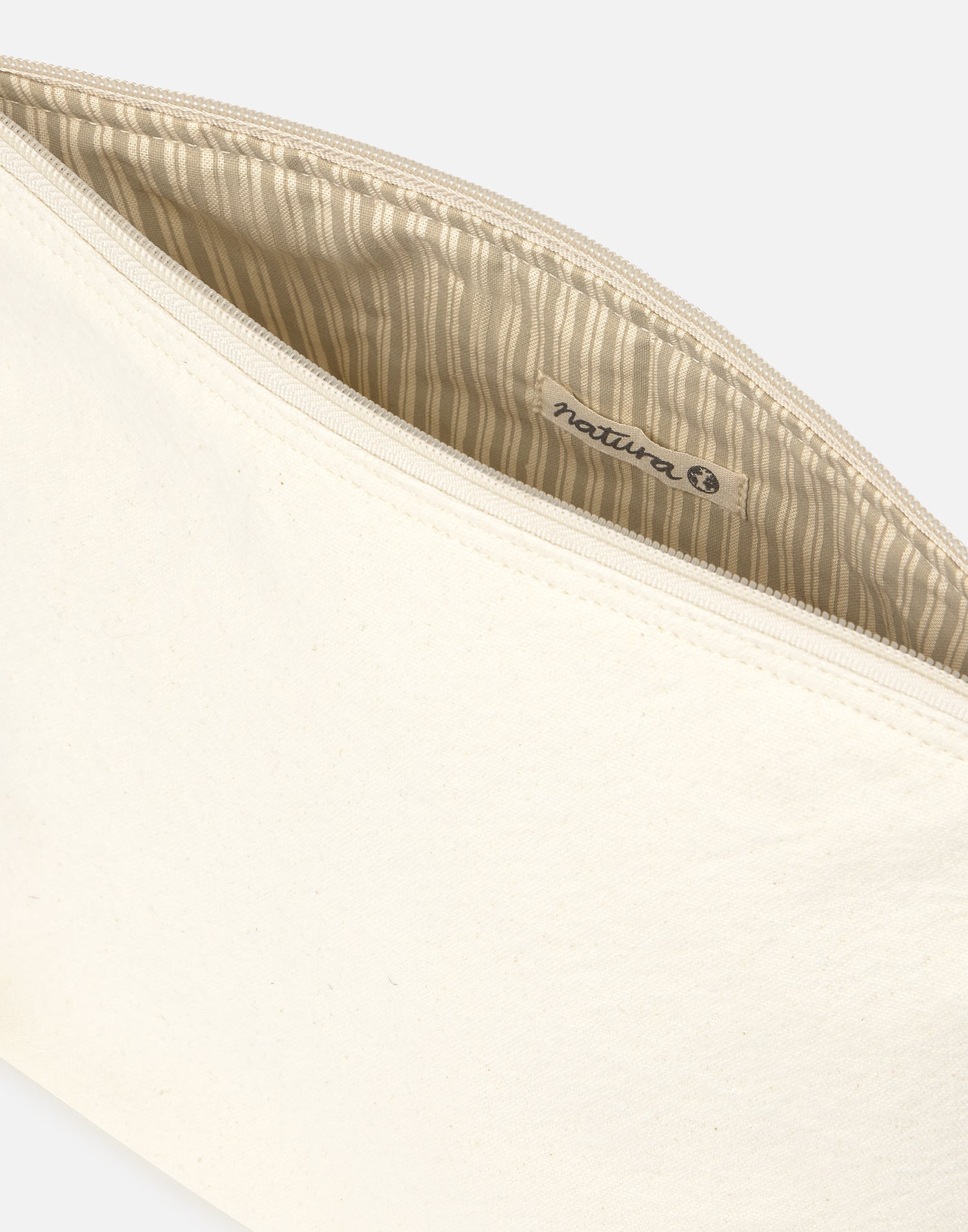 Beauty case multiuso con fodera interna in cotone stampato a contrasto, chiusura con zip e manico laterale.