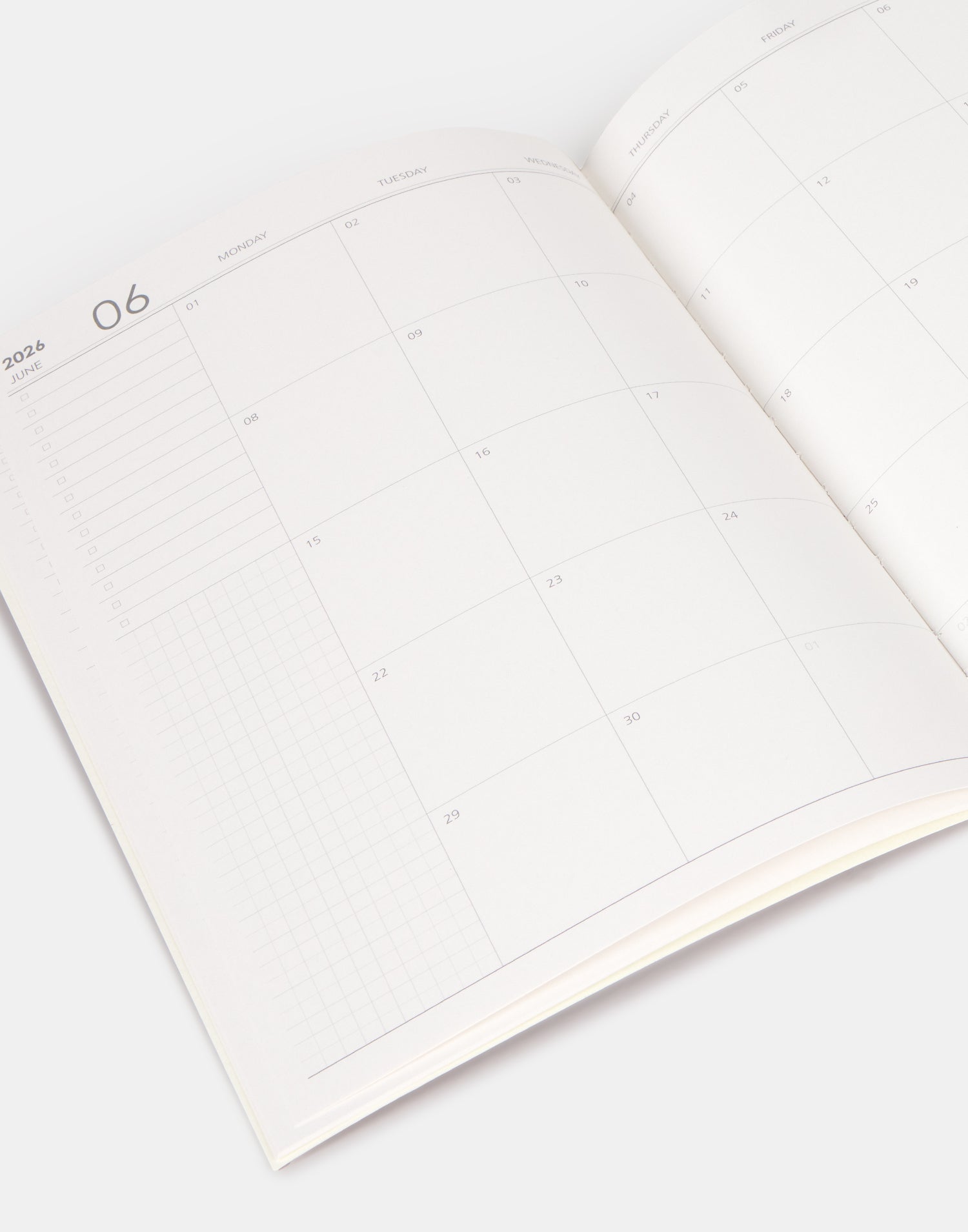Quaderno planner per il 2026 con vista mensile e formato A4.