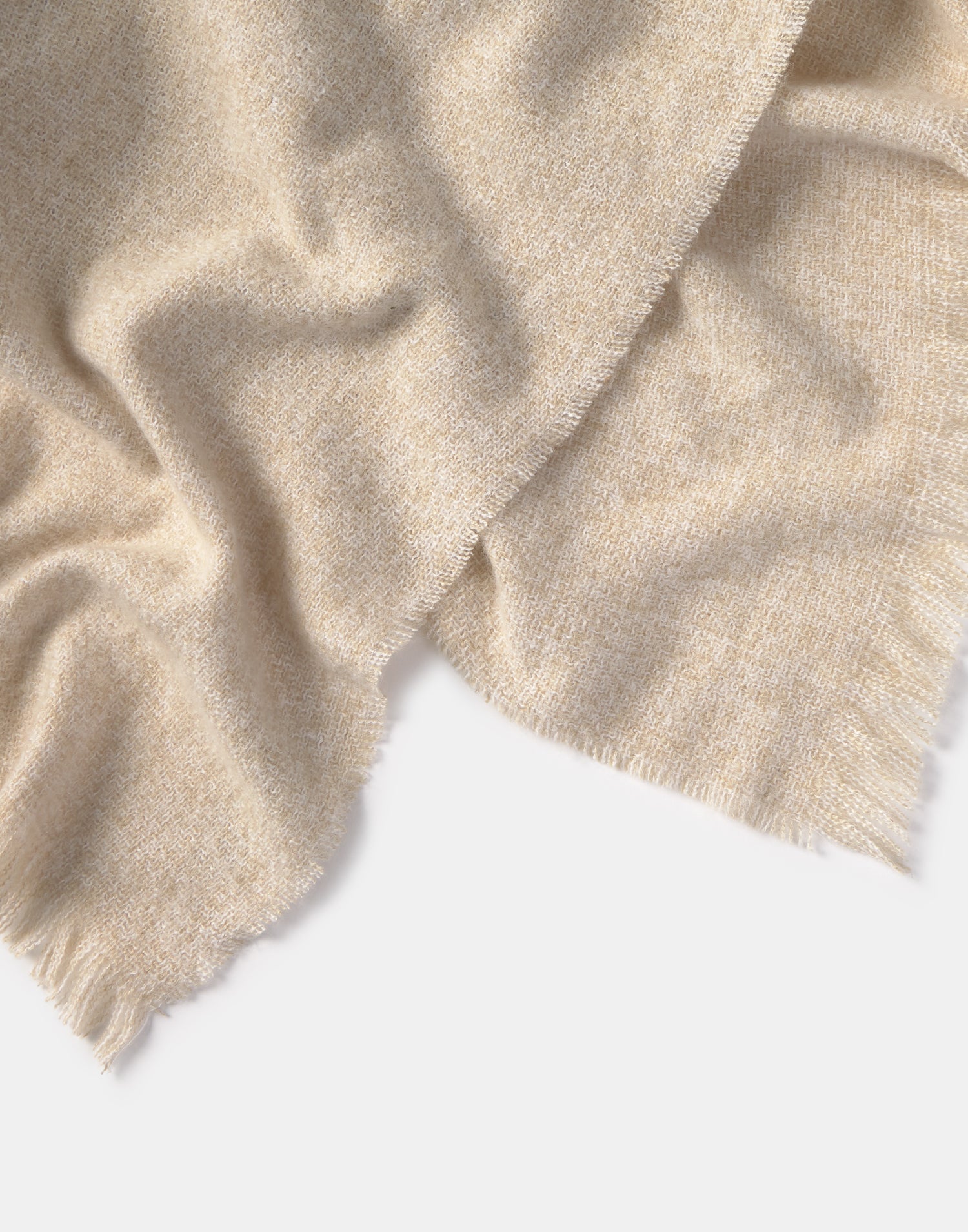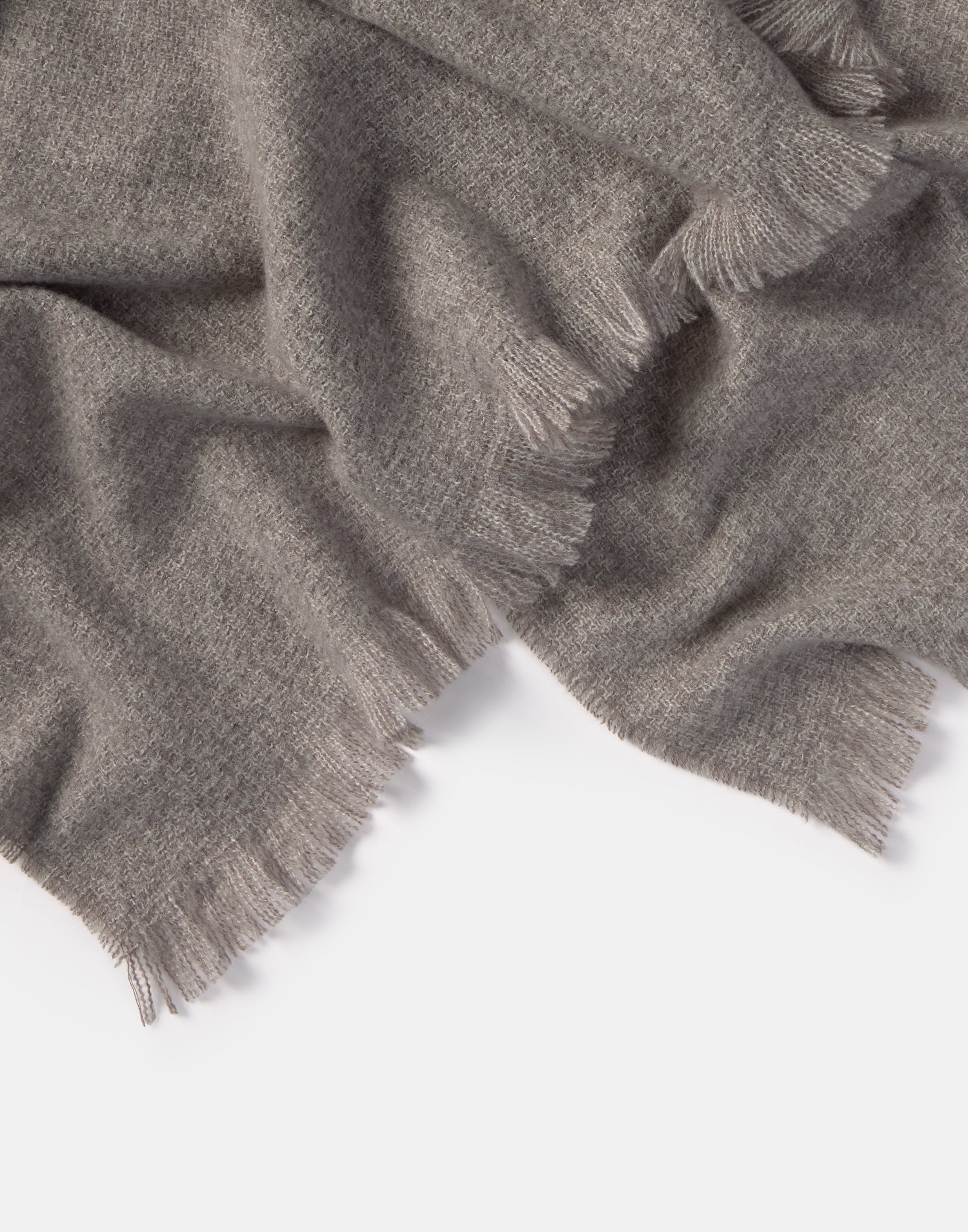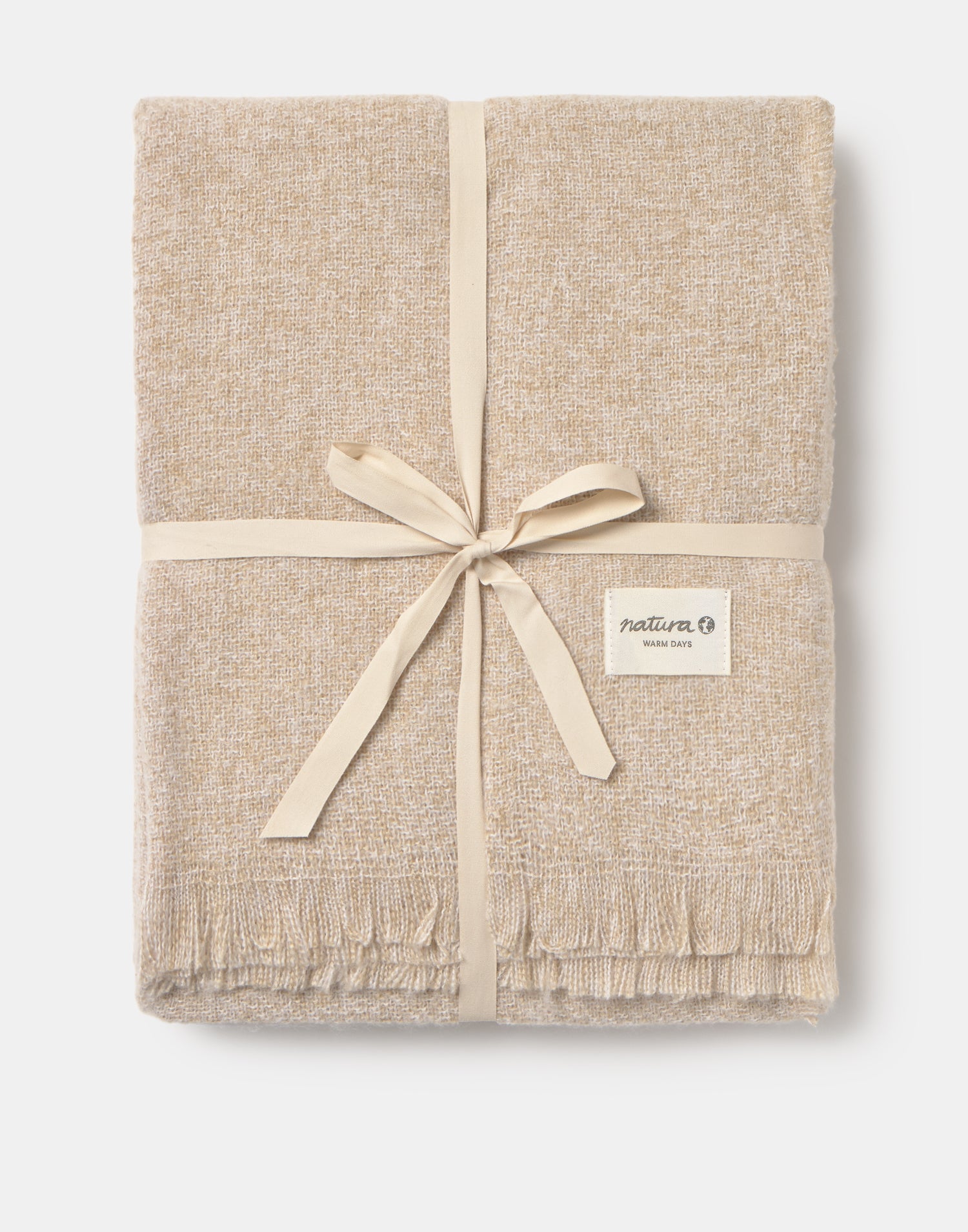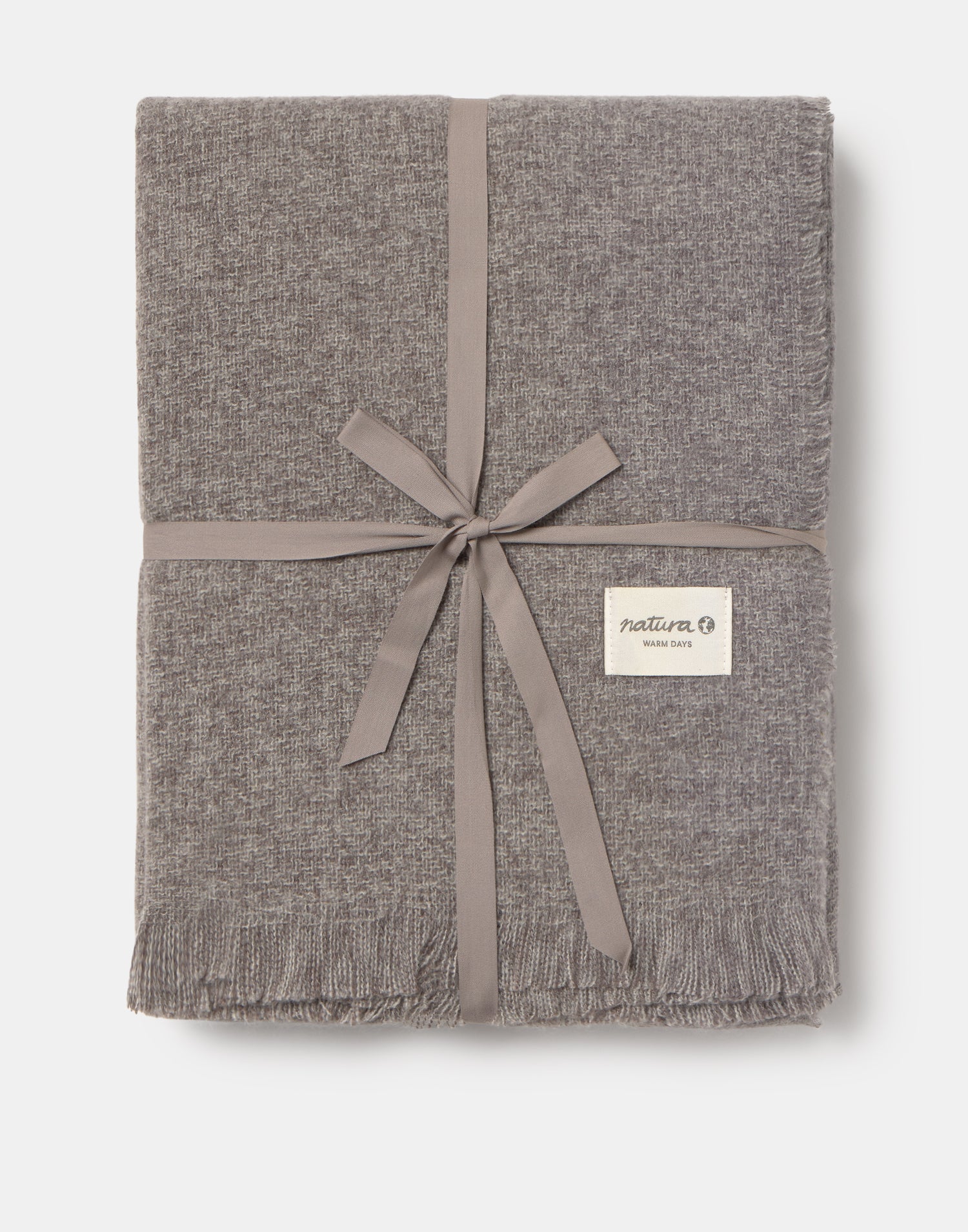 Coperta morbida con dettaglio di finiture sfrangiate.