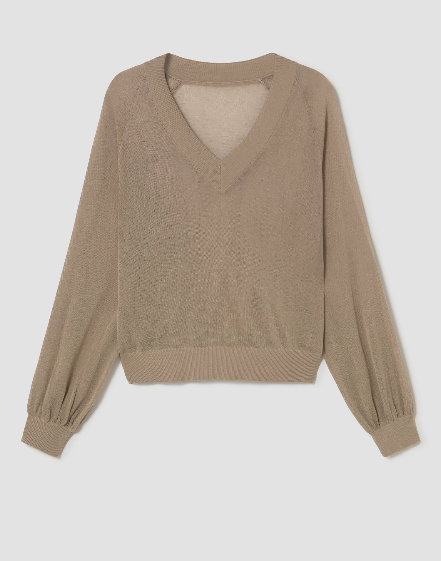 Maglione in maglia fine con scollo a V. Maniche lunghe rifinite con polsini.