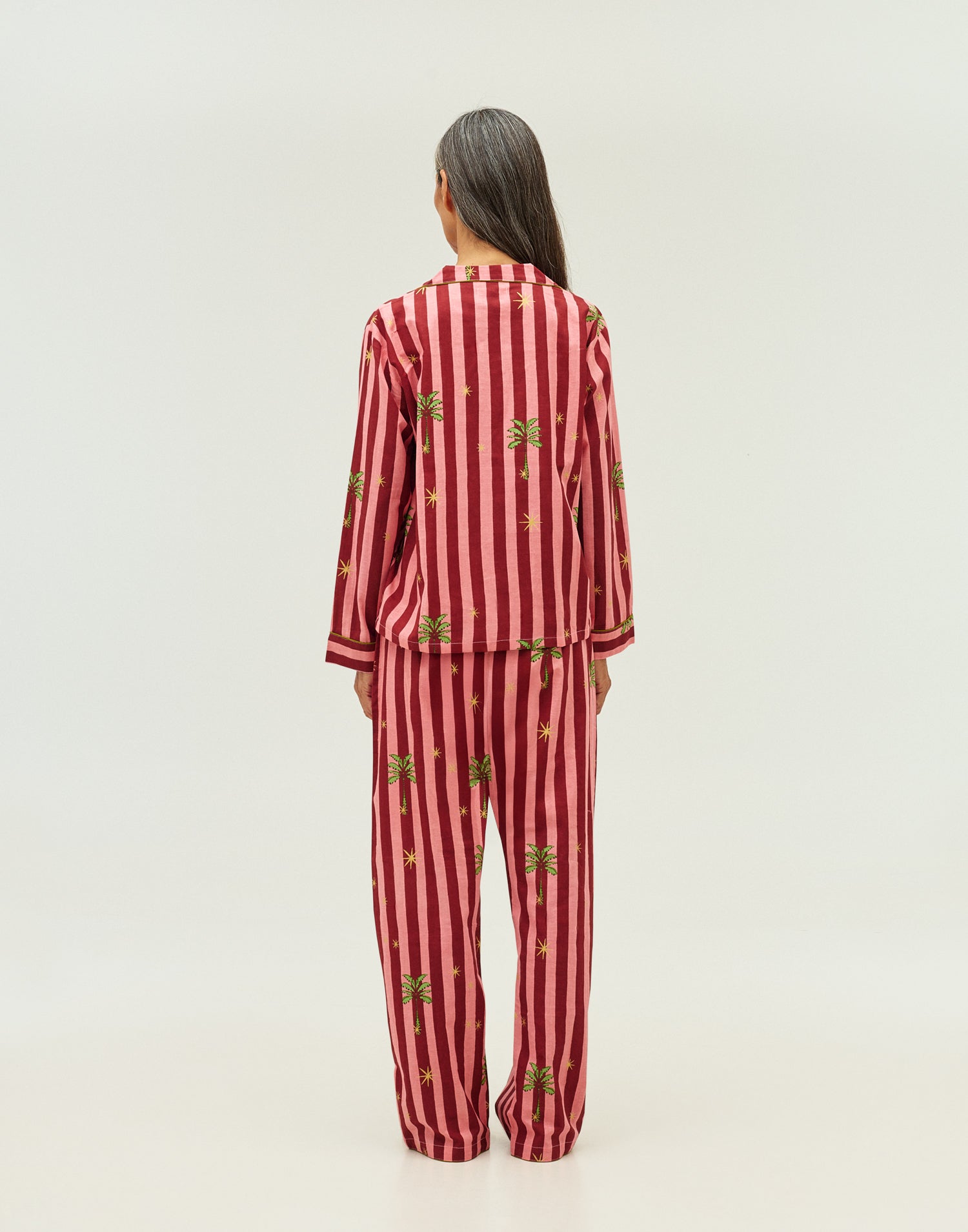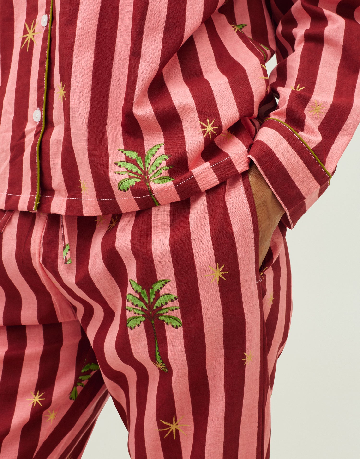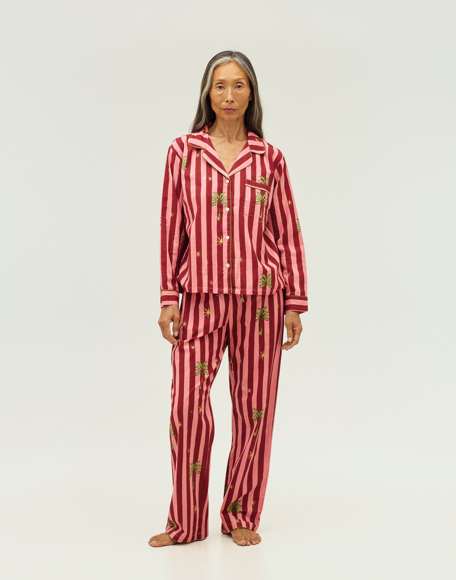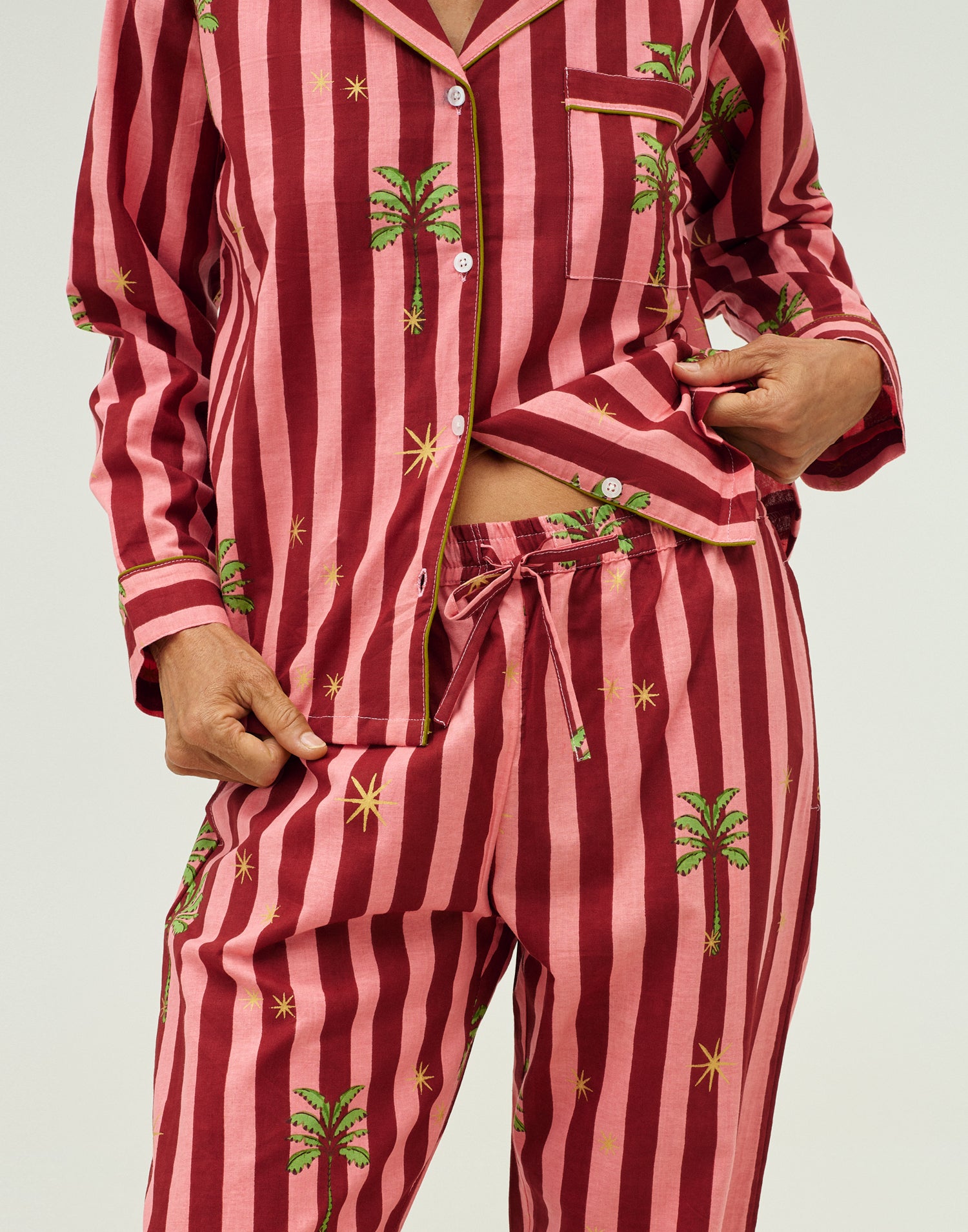 Set di pigiama in cotone composto da due pezzi: camicia a manica lunga e pantalone lungo. Rifinito con bordo a contrasto.