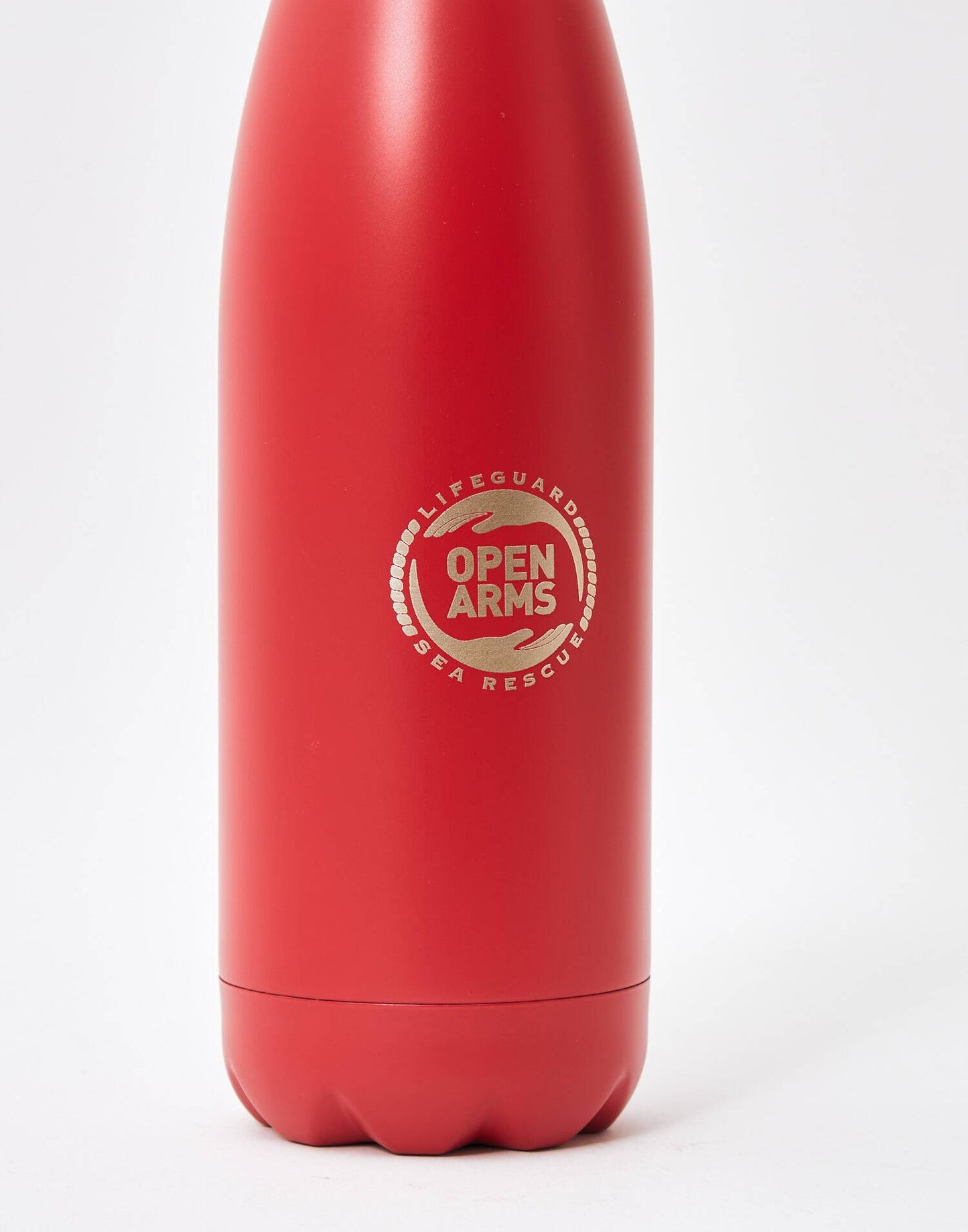Bottiglia riutilizzabile in acciaio inossidabile con tappo di sicurezza con filo. Porta con te l'acqua di cui hai bisogno, mantenendo la temperatura e dichiarando che sei complice della causa delle braccia aperte. Il tuo contributo li aiuta a continuare a salvare vite umane.