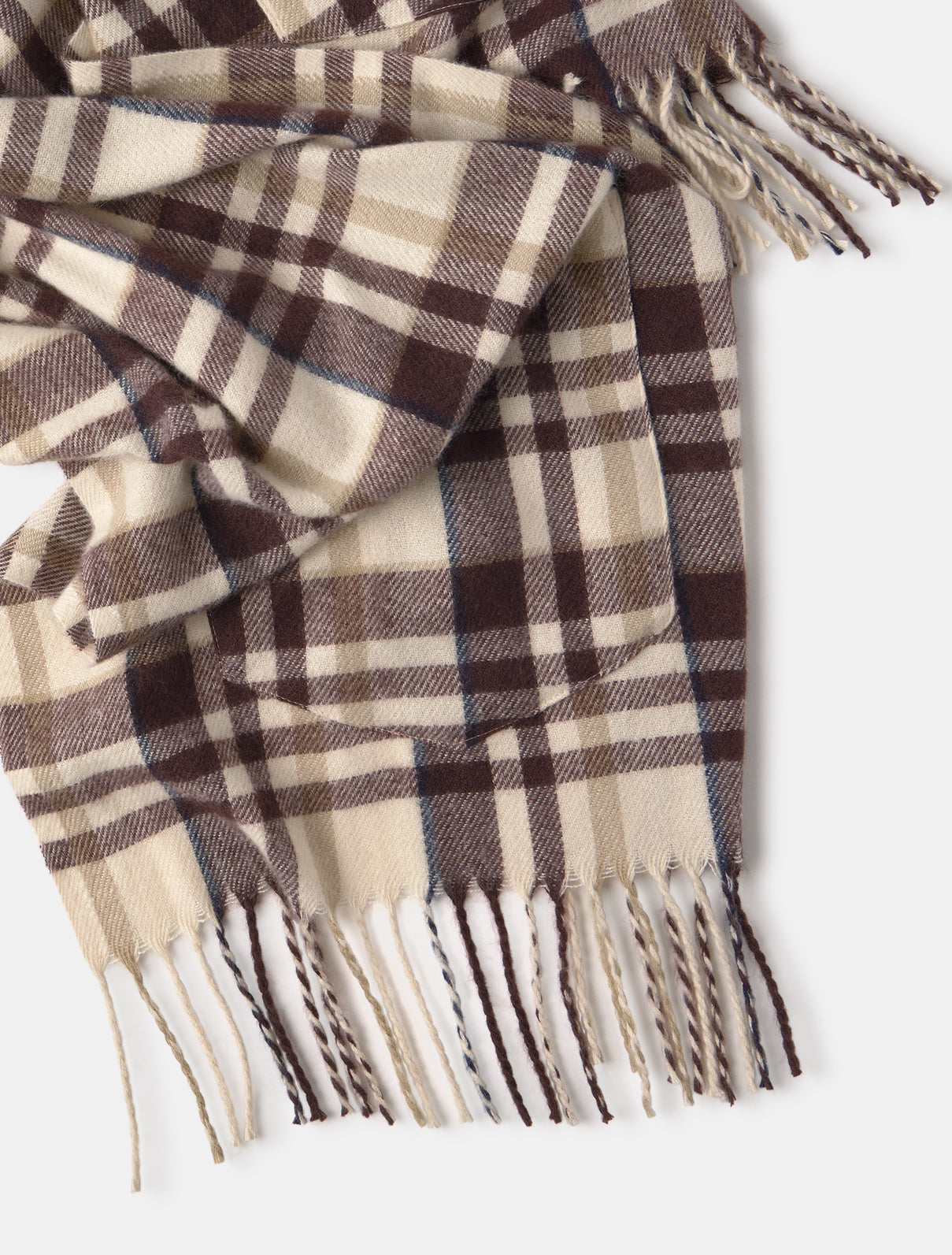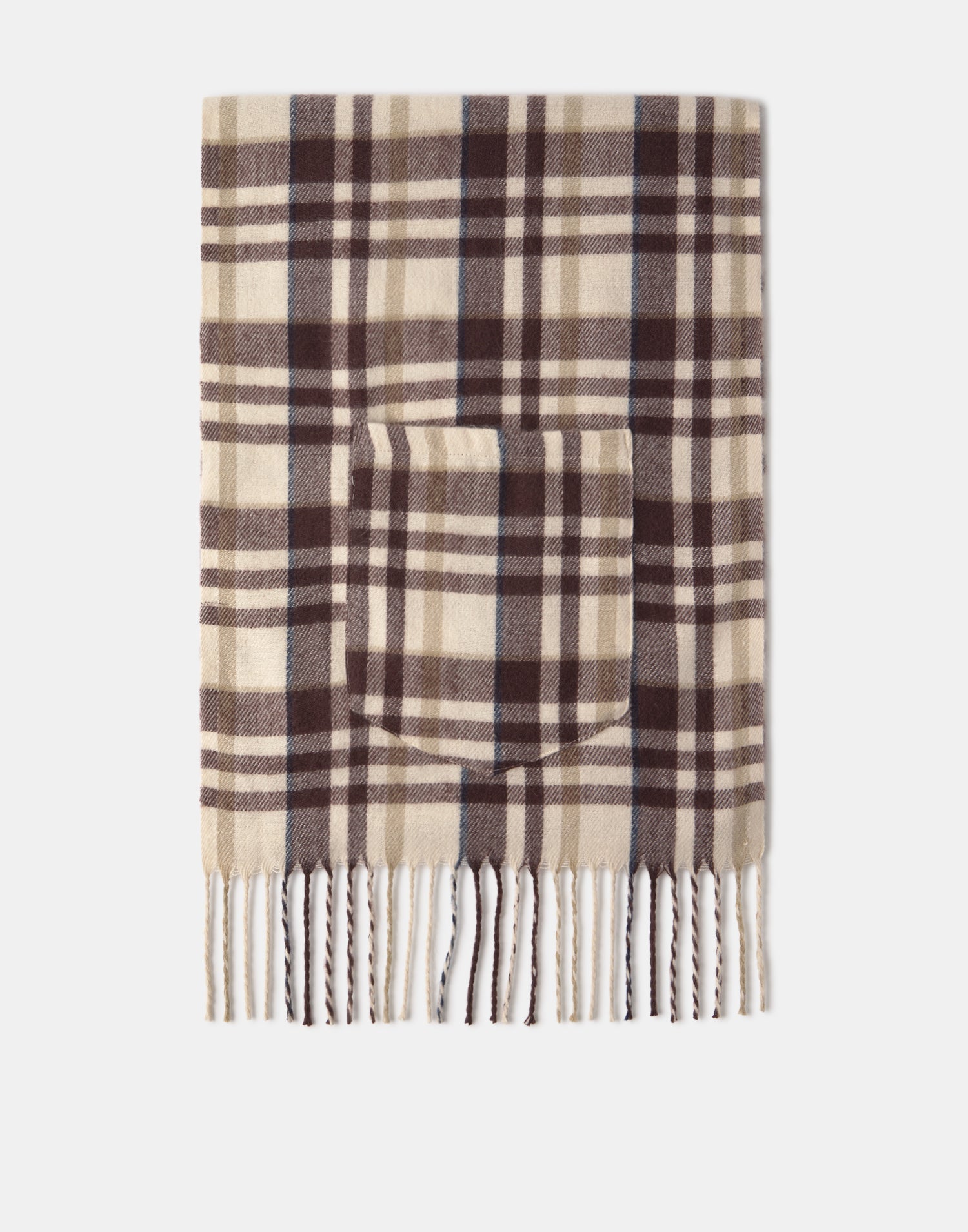 Bufanda con detalle de bolsillo de plastrón en cada extremo y terminaciones en flecos.