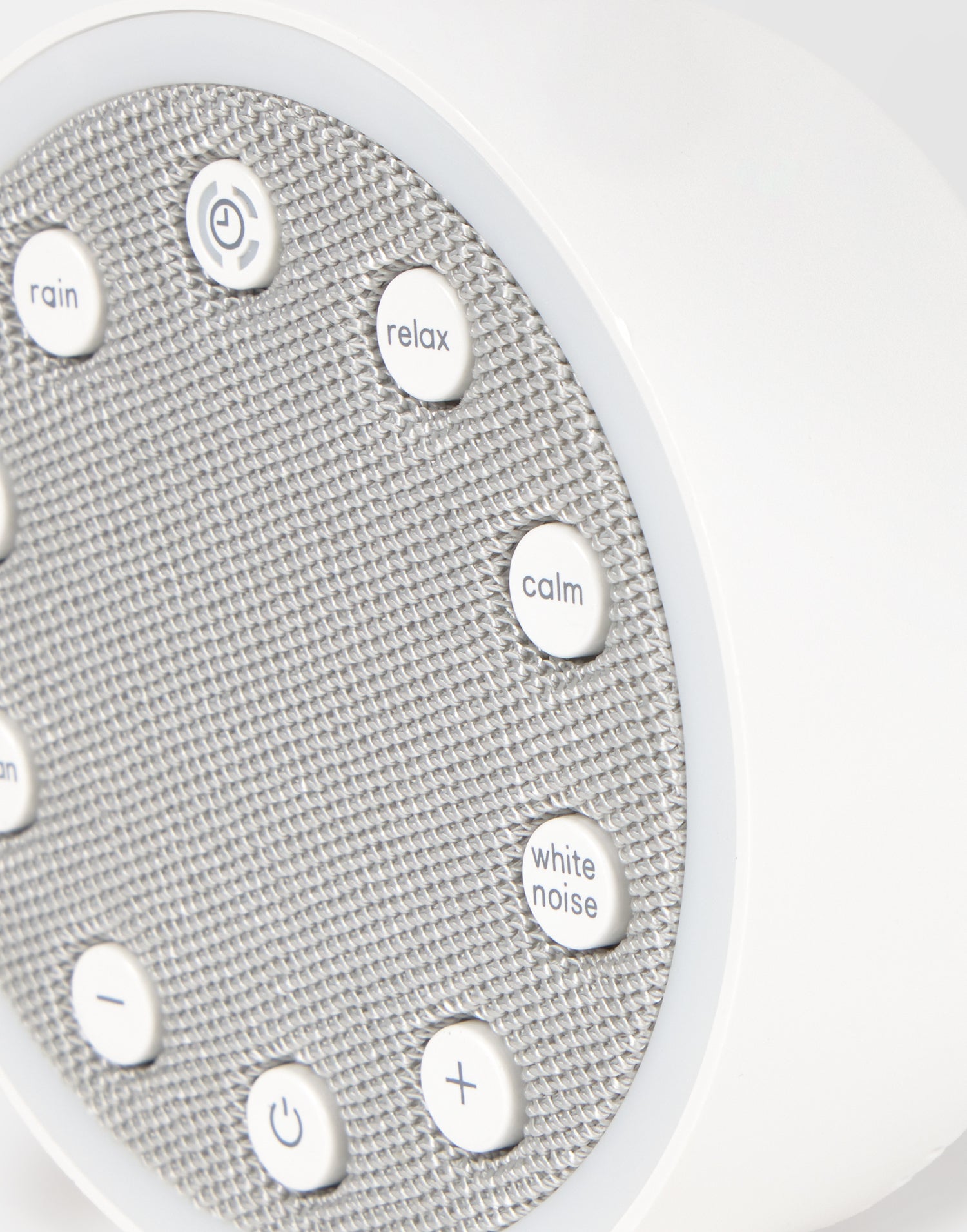 Dispositivo para favorecer la relajación y el bienestar. Cuenta con 6 sonidos predeterminados (océano, lluvia, bosque, relax, calma y ruido blanco), 3 modos de luz LED y función de temporizador (15/30/60 minutos).