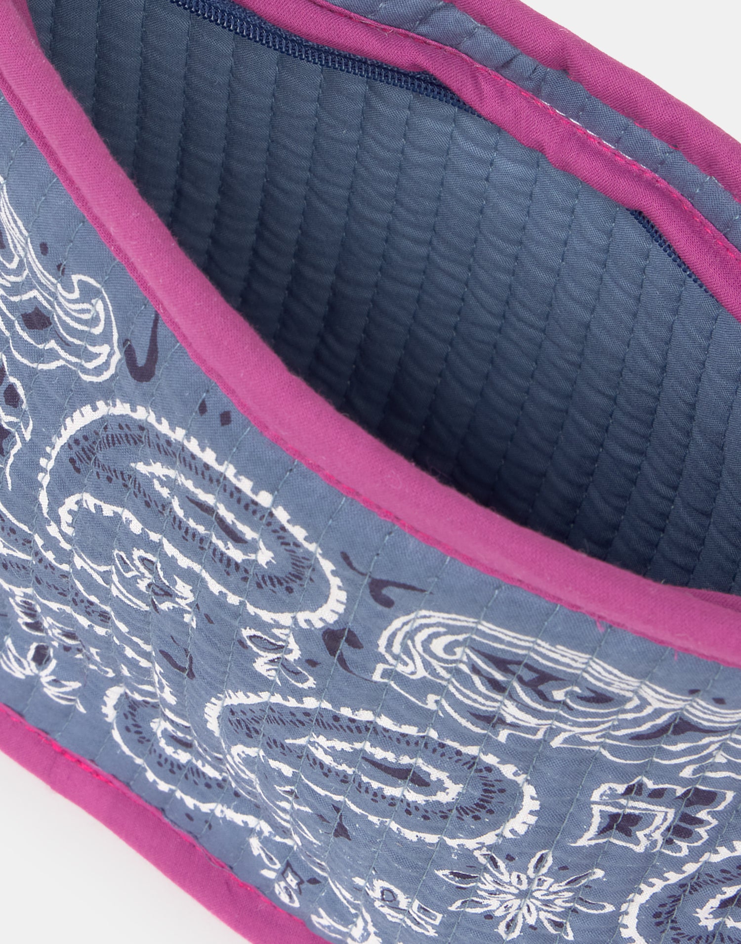 Neceser de algodón con estampado paisley y cierre de cremallera.