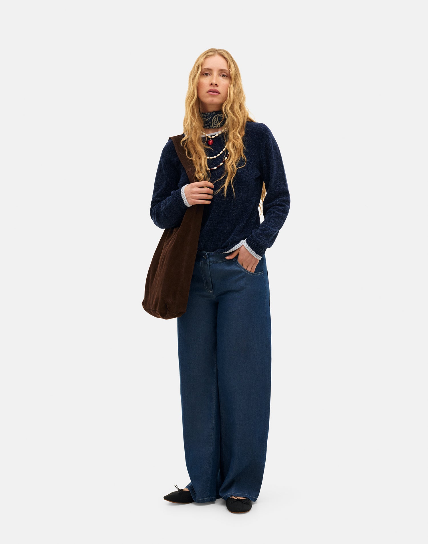 Bolso de piel con asa larga ancha y cierre imantado.