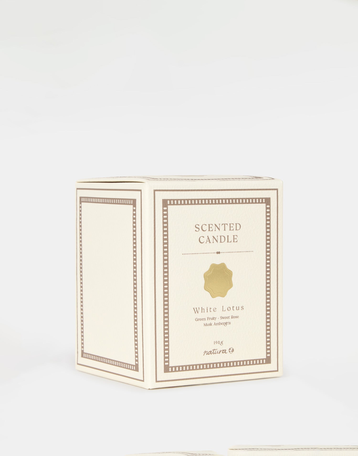 Cristal, papel. Vela: 60% cera soja y 40% parafina.
